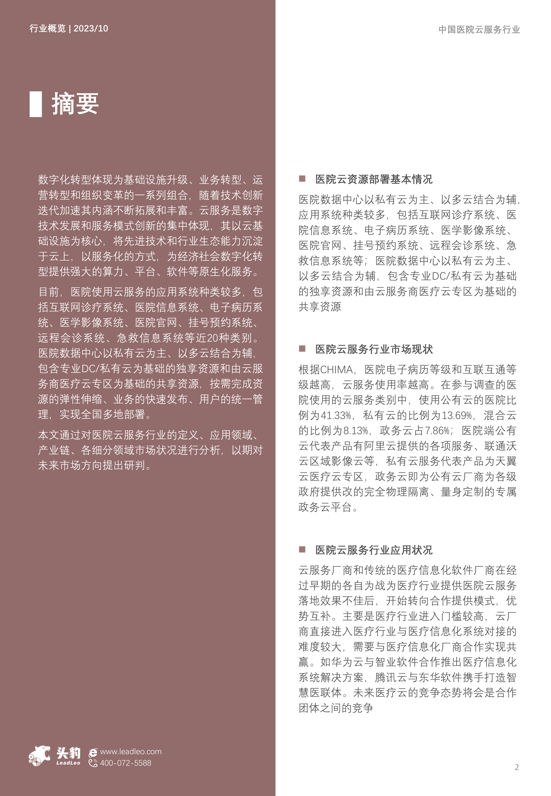 本报告基于头豹研究院对2023年中国医院云服务行业的分析,核心观点如下: