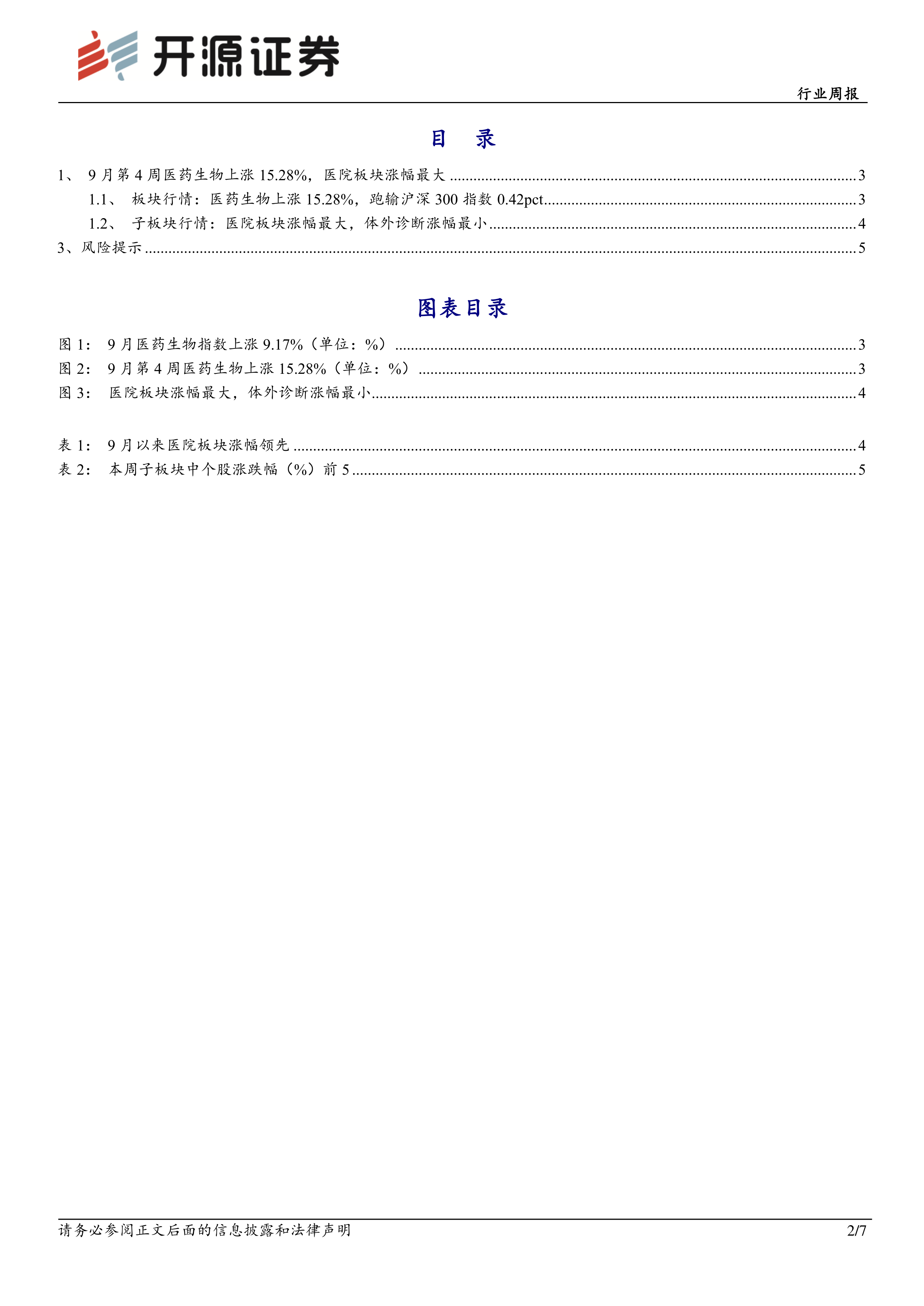 9月第4周医药生物上涨15.28%,医院板块涨幅最大