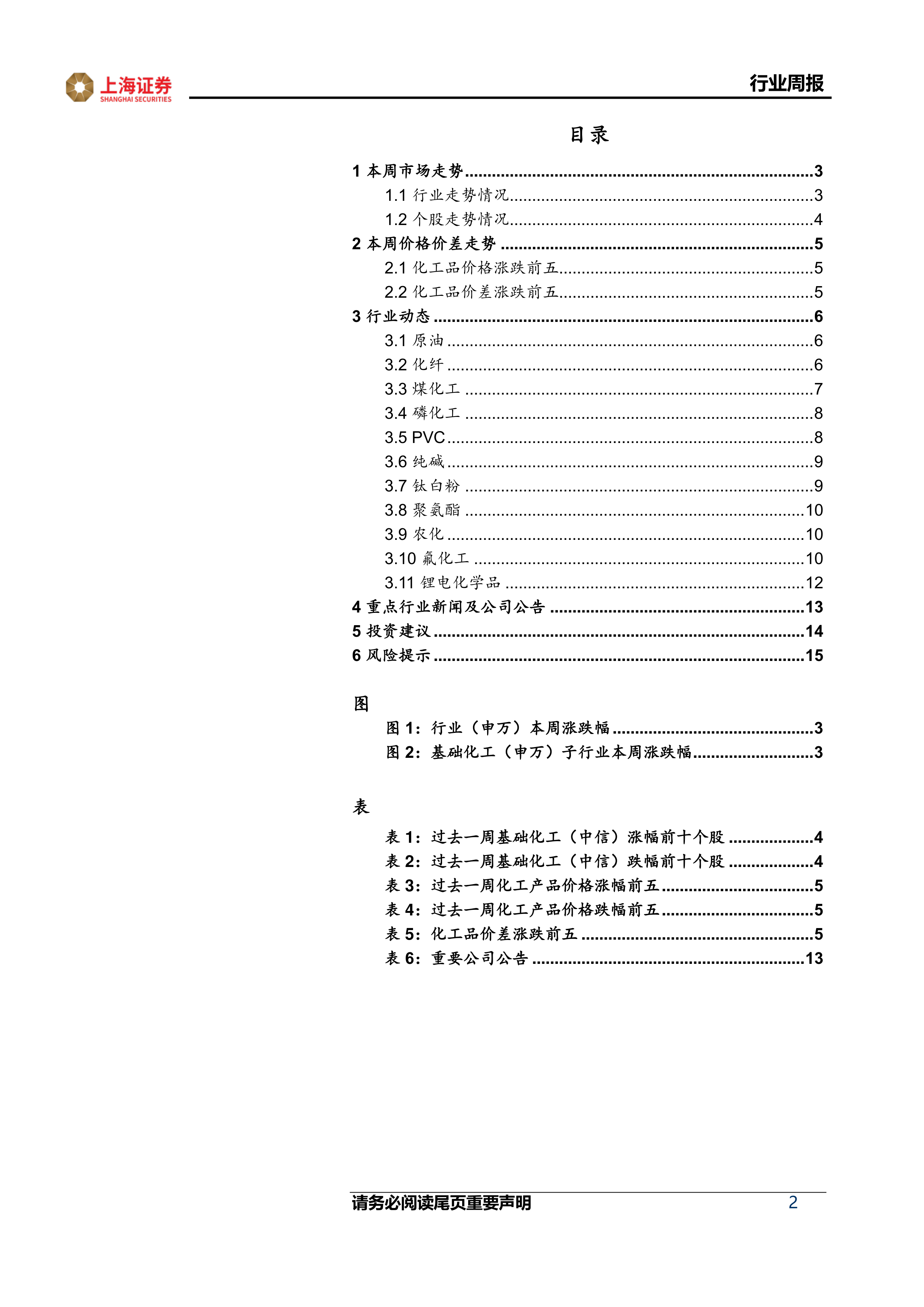 报告最后给出了投资建议,建议关注制冷剂、芳纶、煤化工和轮胎等板块的投资机会,并维持基础化工行业“增持”评级。同时,报告也指出了原油价格波动、需求不达预期和宏观经济下行等风险因素。