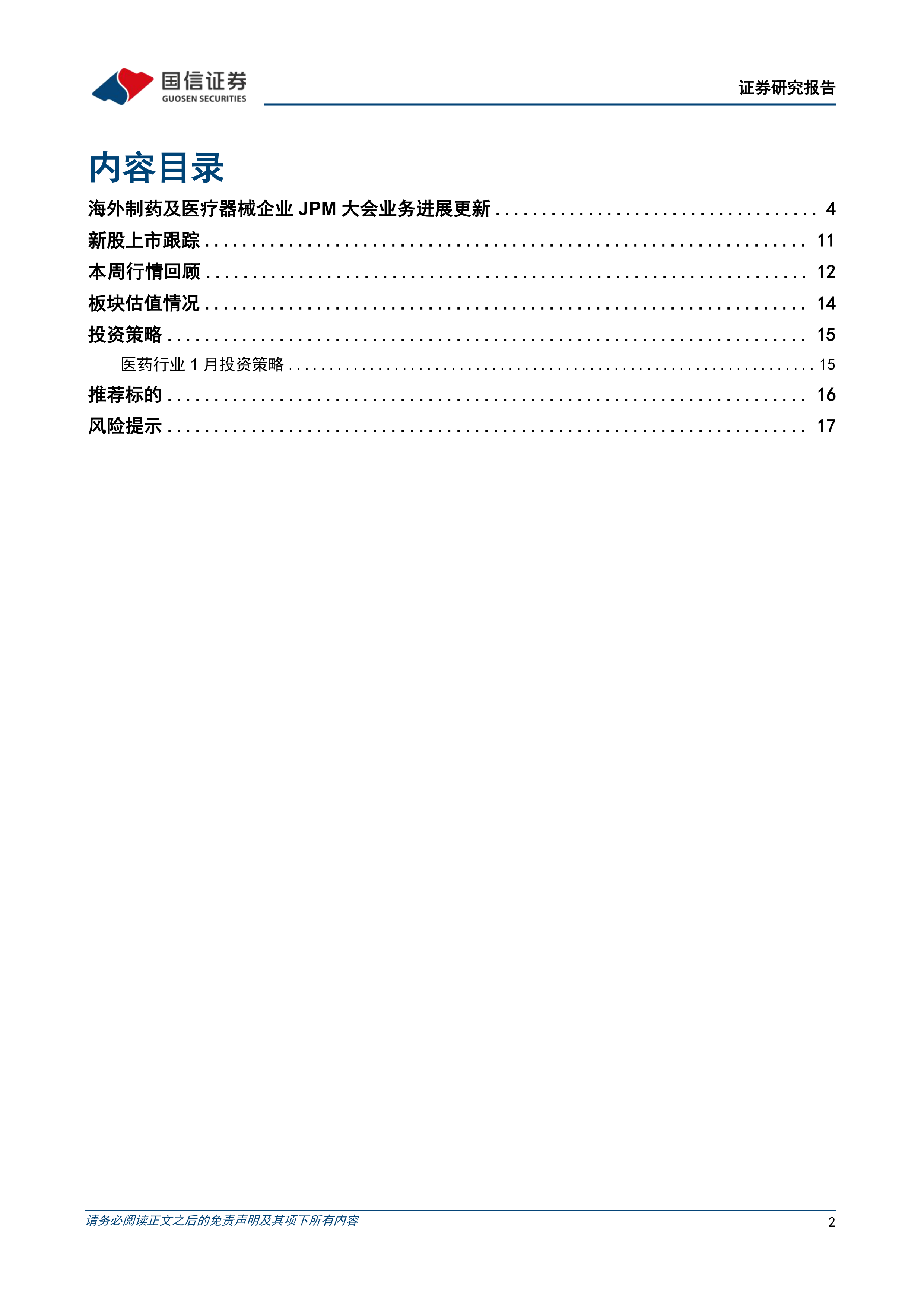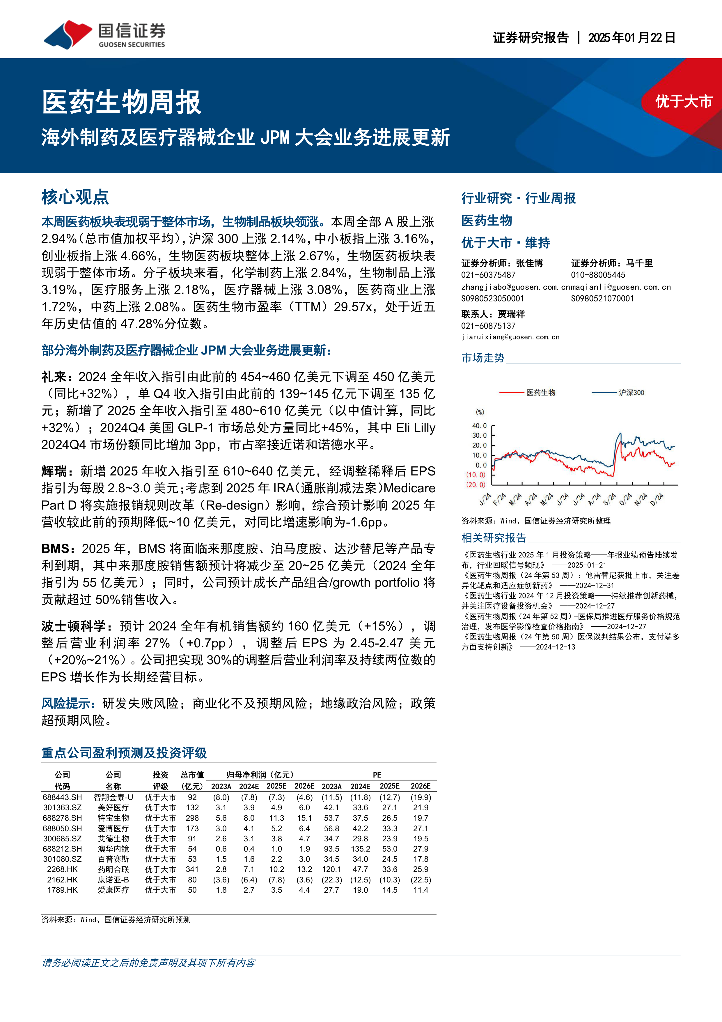医药生物周报:海外制药及医疗器械企业 JPM大会业务进展更新