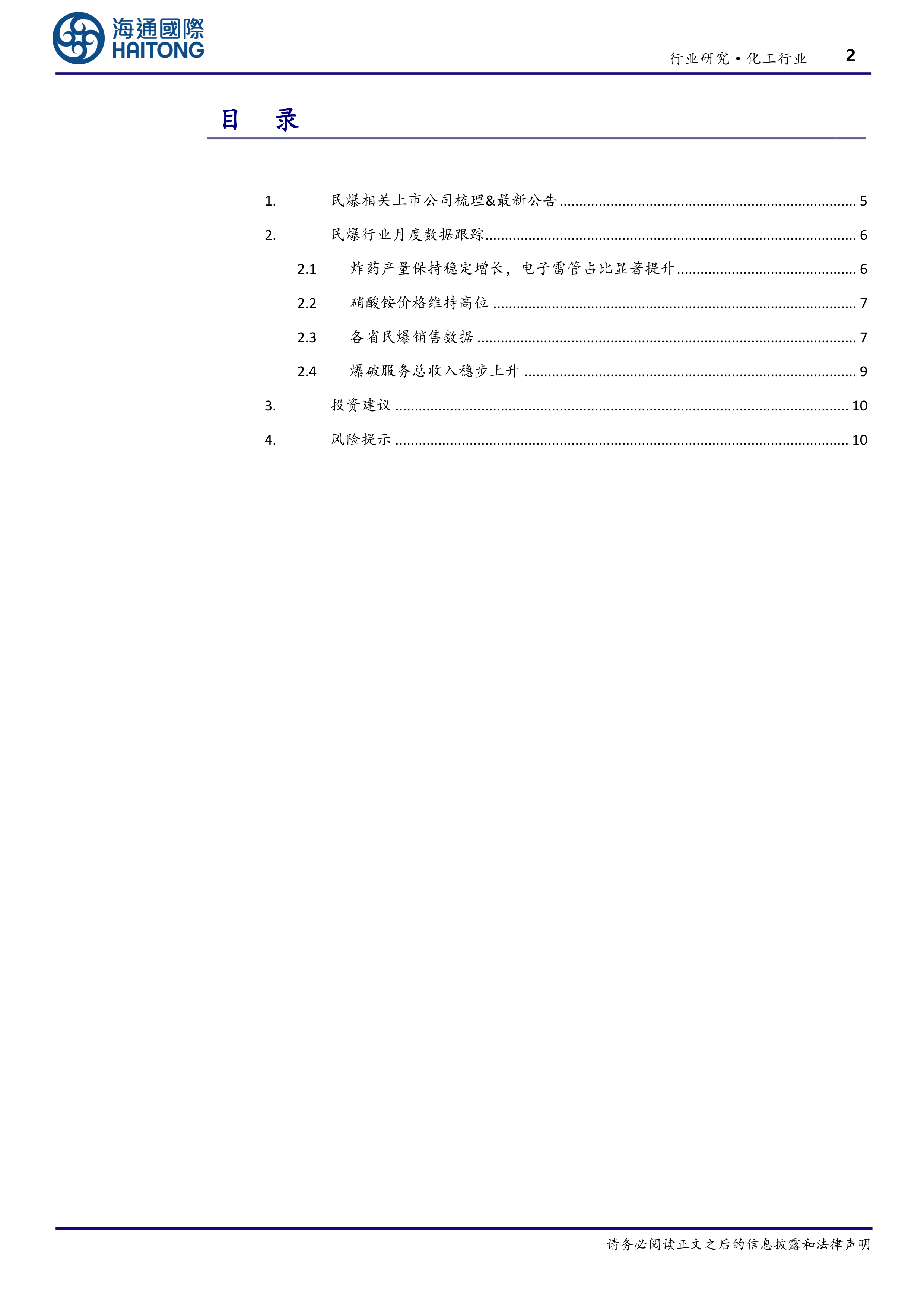 本节梳理了多家民爆相关上市公司的基本情况,包括产能布局、收入情况等,并重点介绍了上周几家上市公司的重要公告,例如同德化工的资产转让、广东宏大的股票激励计划以及壶化股份的投资动向。这些公告反映了行业内部分公司在进行资产重组、激励员工以及拓展新业务等方面的积极举措。