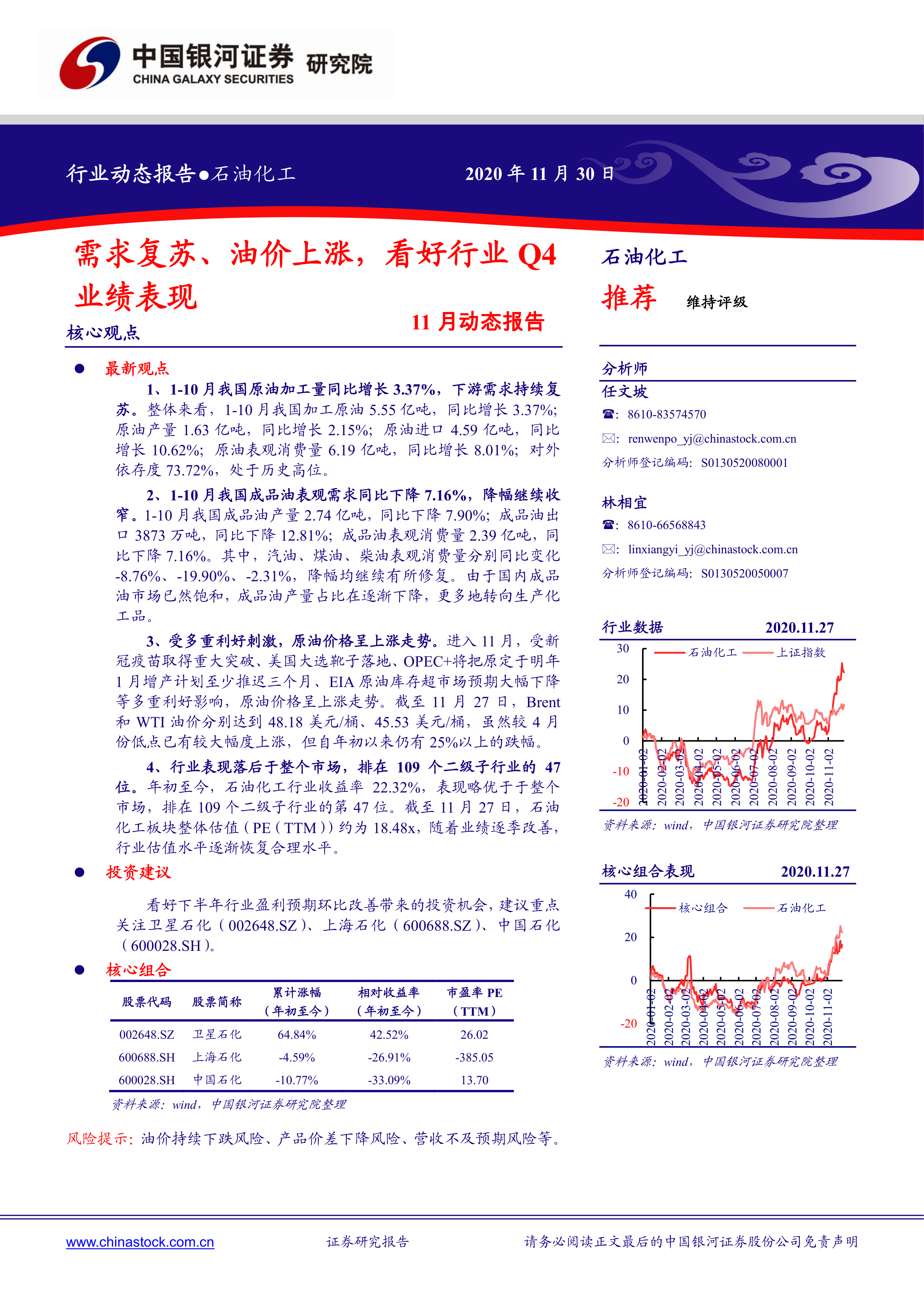 石油化工:需求复苏、油价上涨,看好行业Q4业绩表现