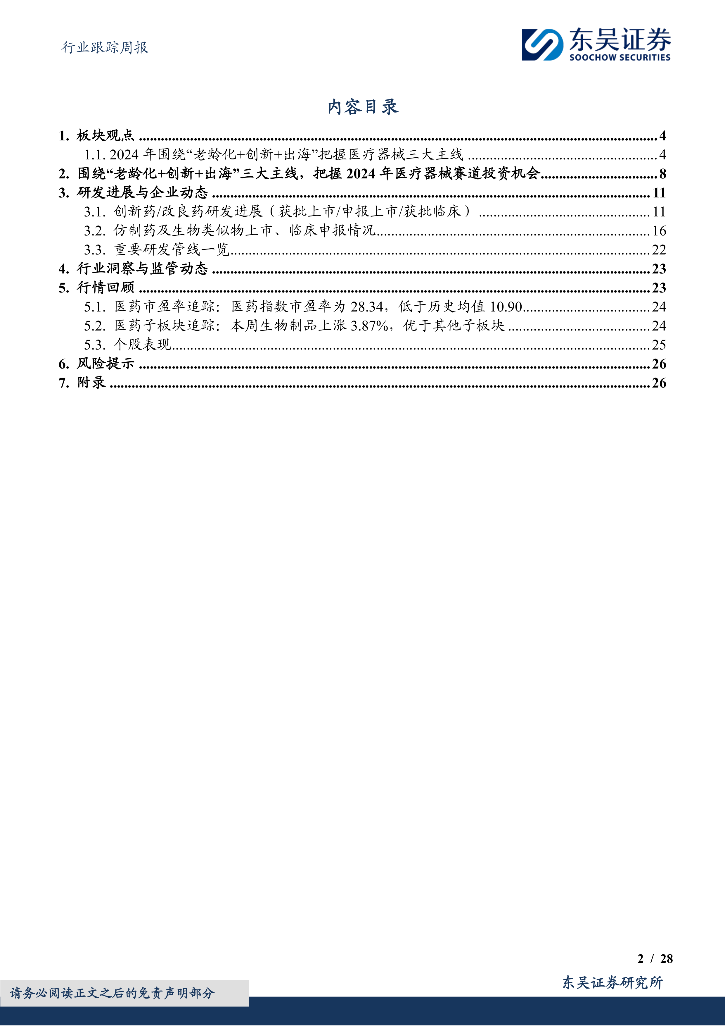 医药生物行业跟踪周报:2024年围绕“老龄化+创新+出海”把握医疗器械三大主线