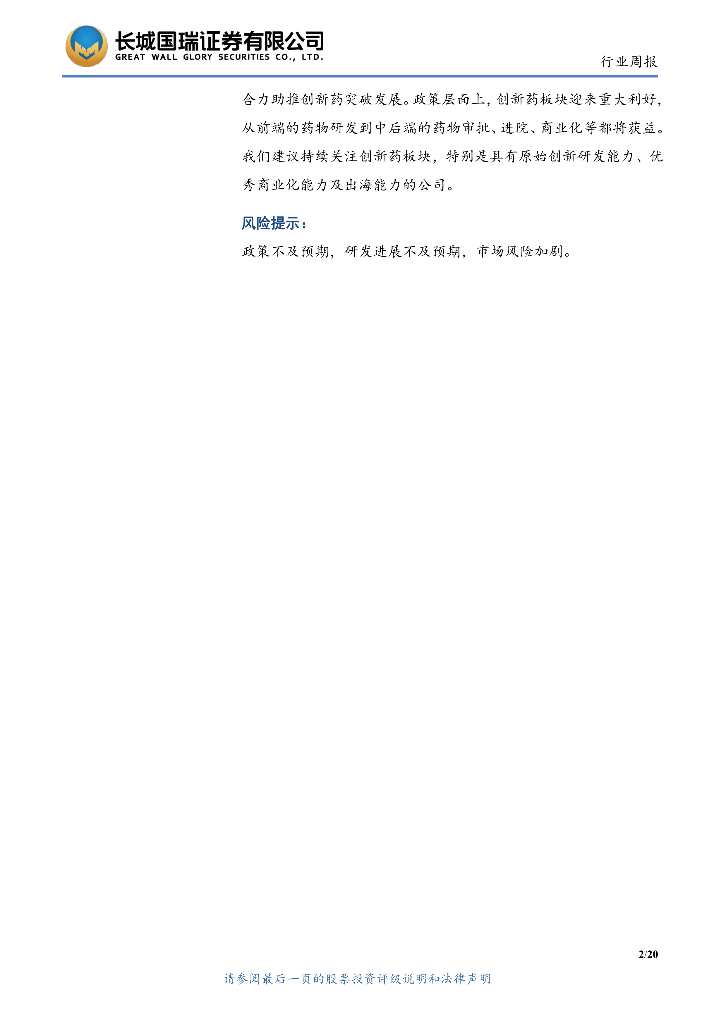 政策不及预期,研发进展不及预期,市场风险加剧。