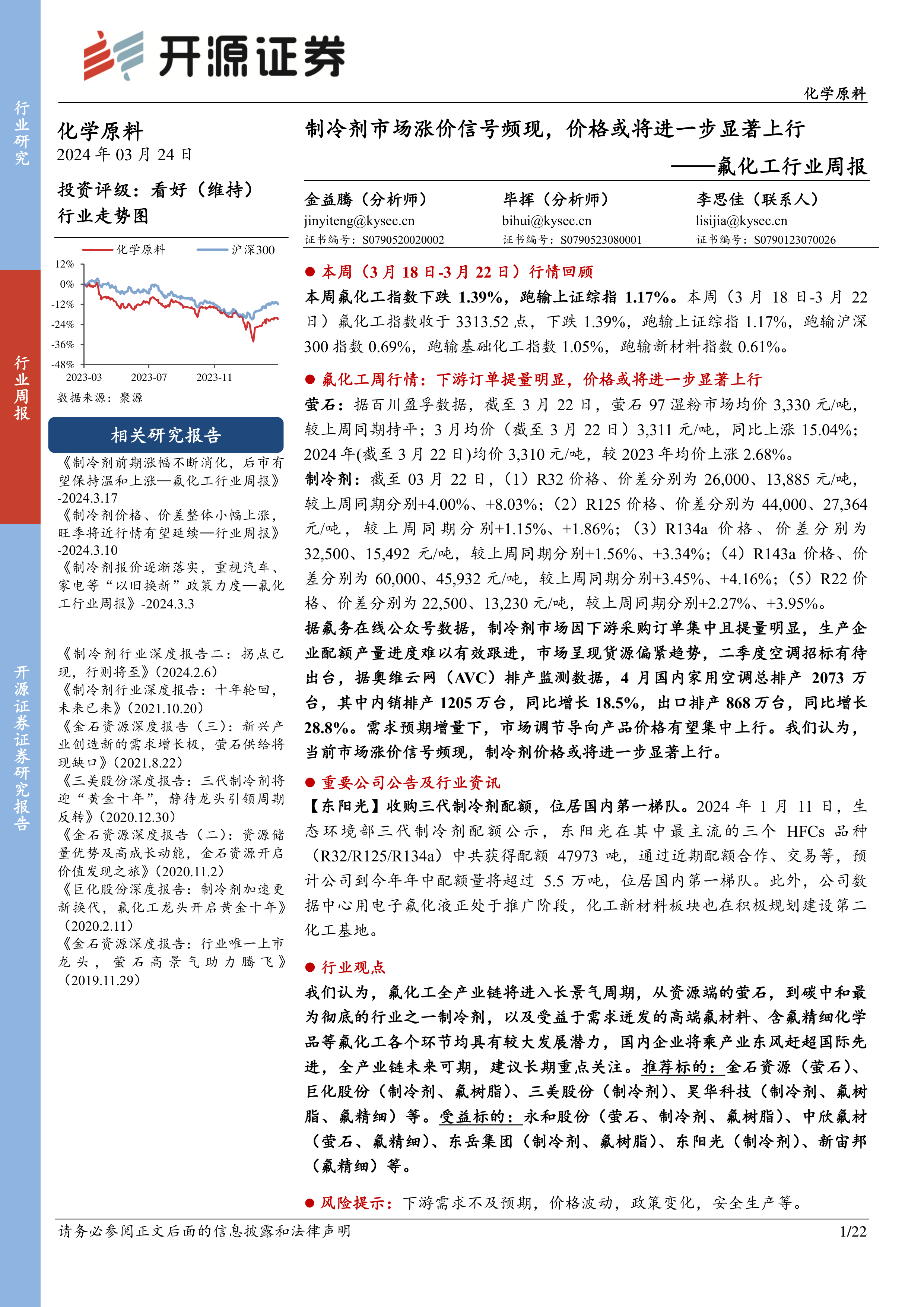 报告最后列出了氟化工行业面临的风险,包括下游需求不及预期、价格波动、政策变化和安全生产等。