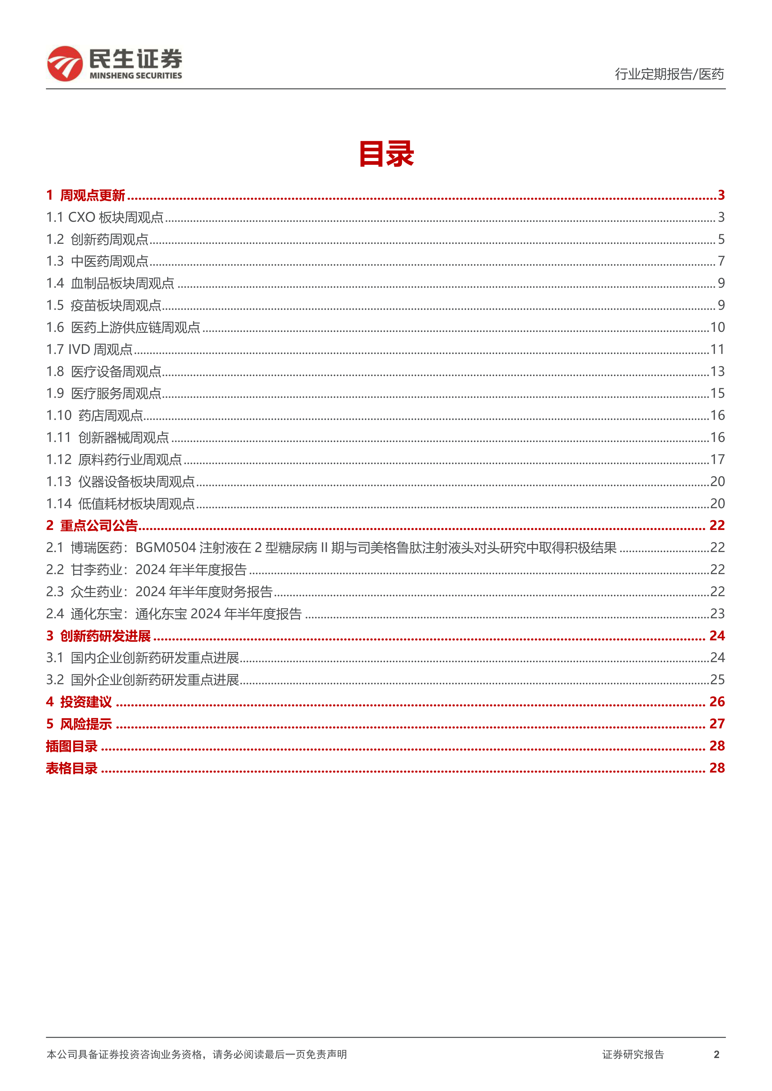 风险提示:集采压力大于预期风险;产品研发进度不及预期风险;竞争加剧风险;政策监管环境变化风险;药物研发服务市场需求下降的风险。