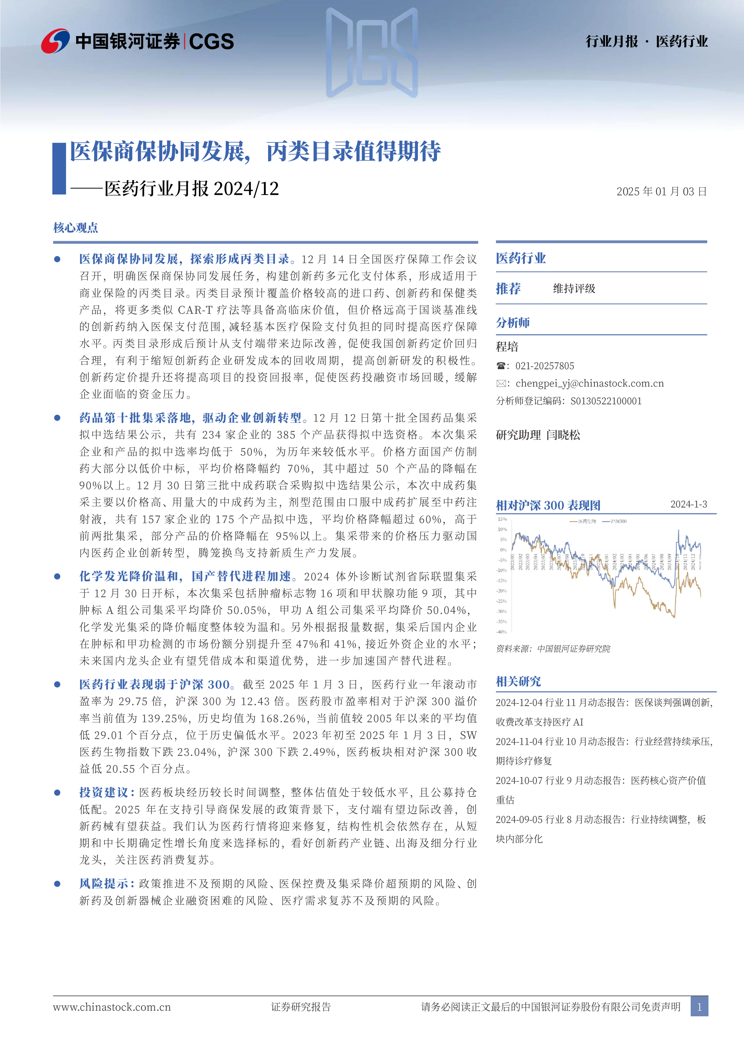 医药行业月报2024/12:医保商保协同发展,丙类目录值得期待
