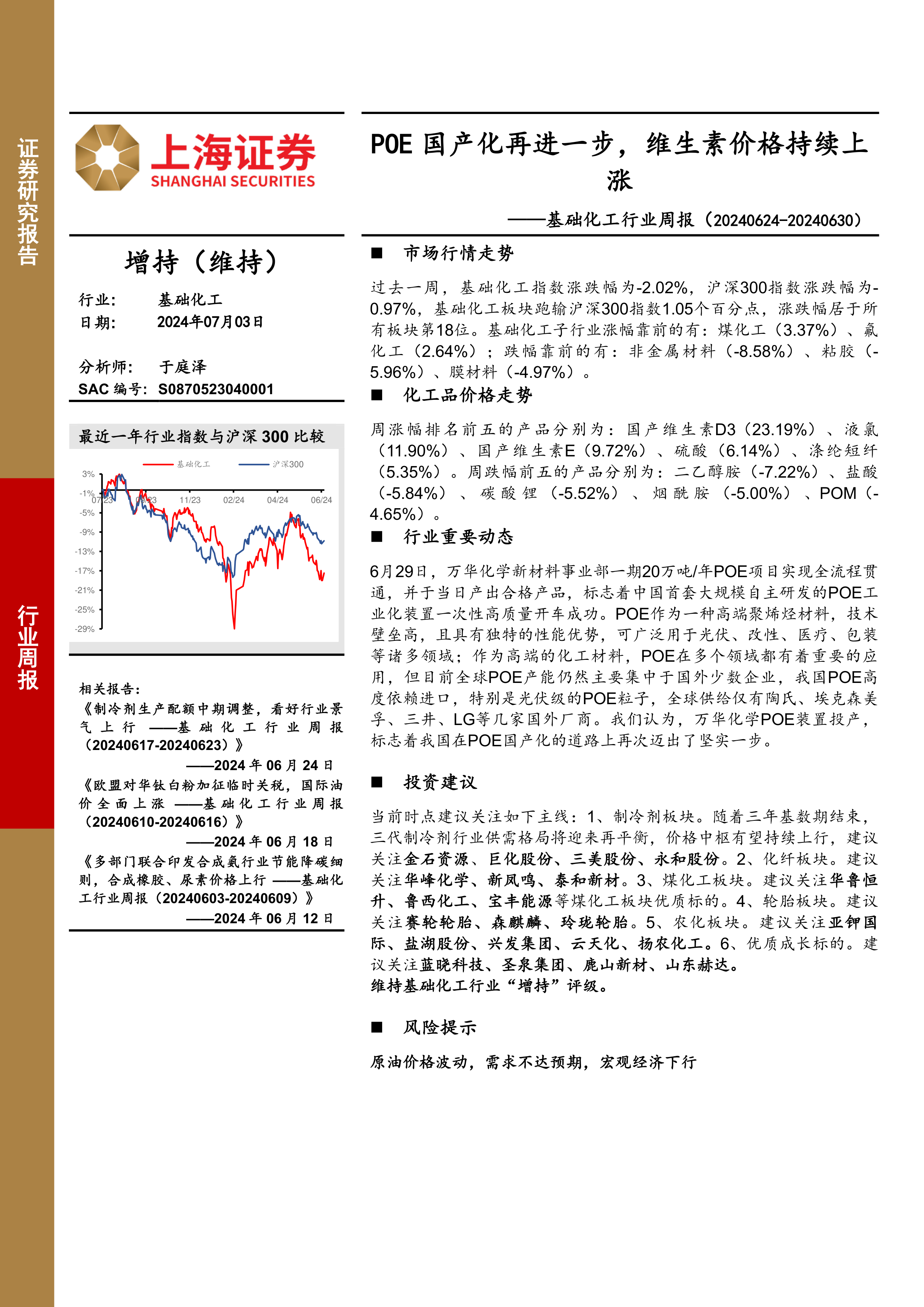 基础化工行业周报:POE国产化再进一步,维生素价格持续上涨