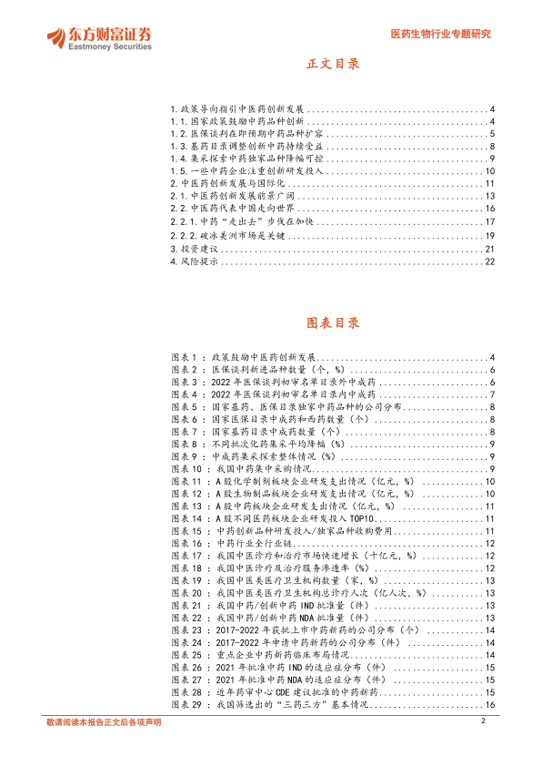 本节列出了投资中医药行业可能面临的风险,包括疫情发展不确定性、政策变化、研发进展不达预期、医保目录调整、药品价格下降等。