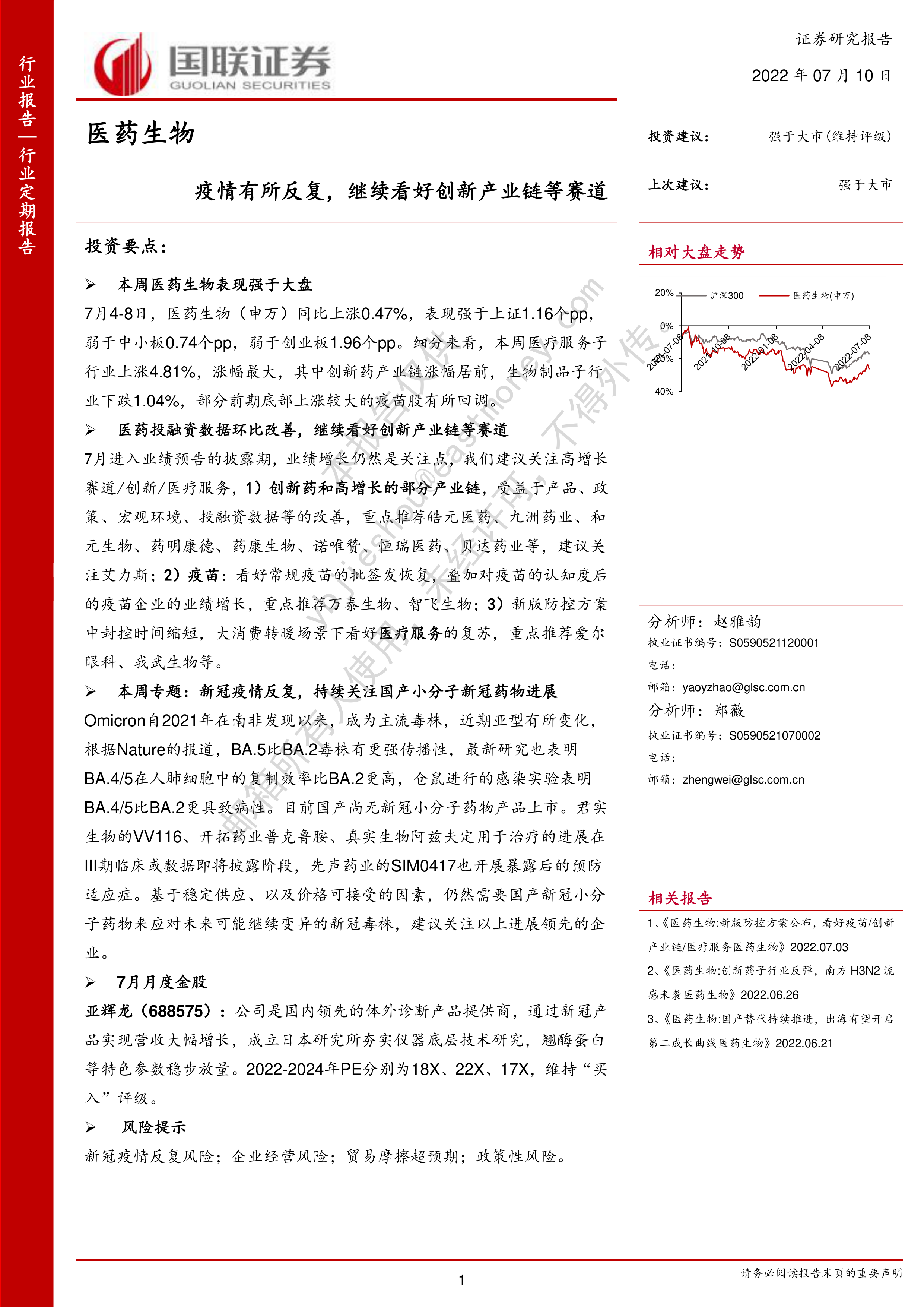 医药生物行业定期报告:疫情有所反复,继续看好创新产业链等赛道