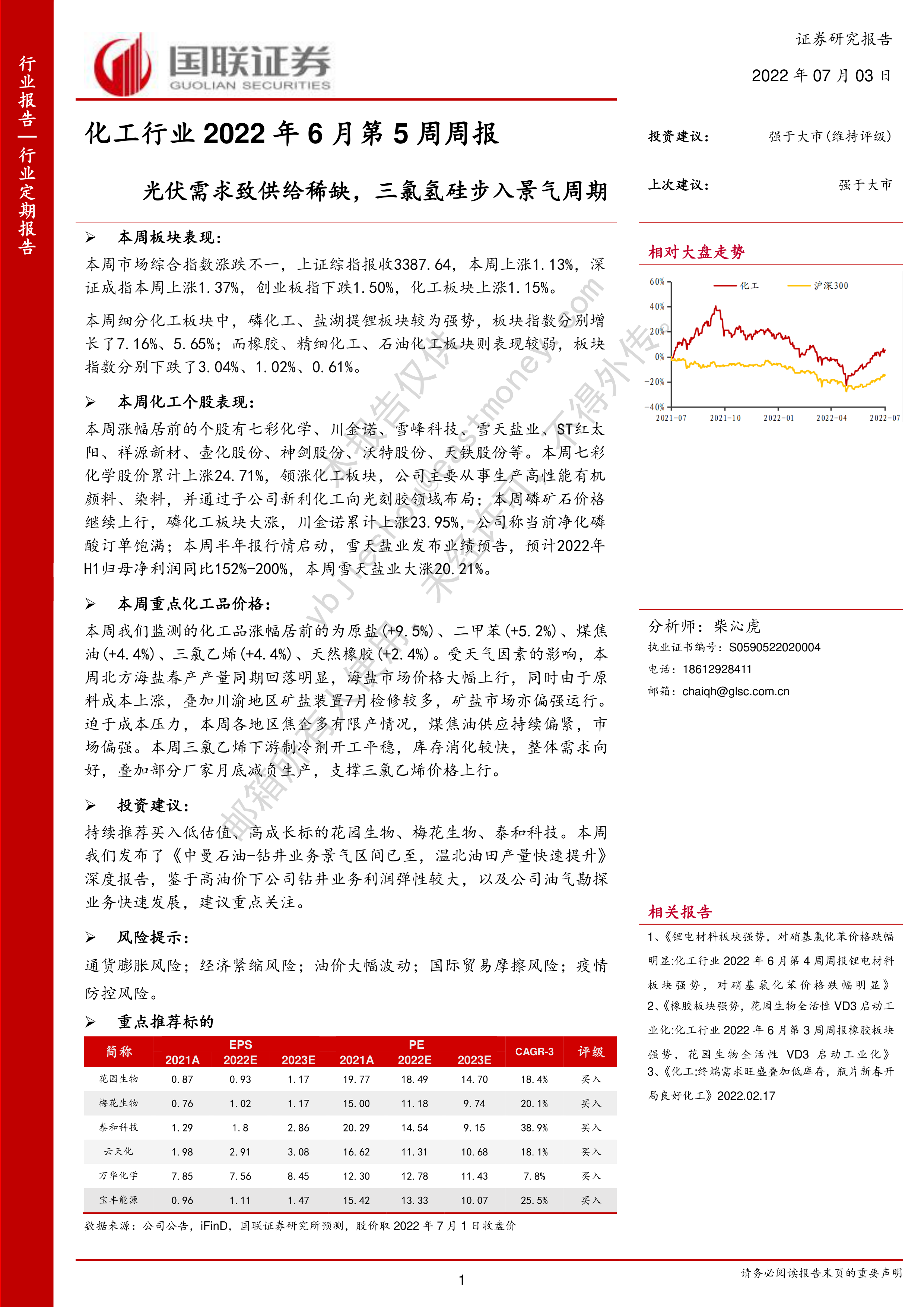 化工行业2022年6月第5周周报:光伏需求致供给稀缺,三氯氢硅步入景气周期