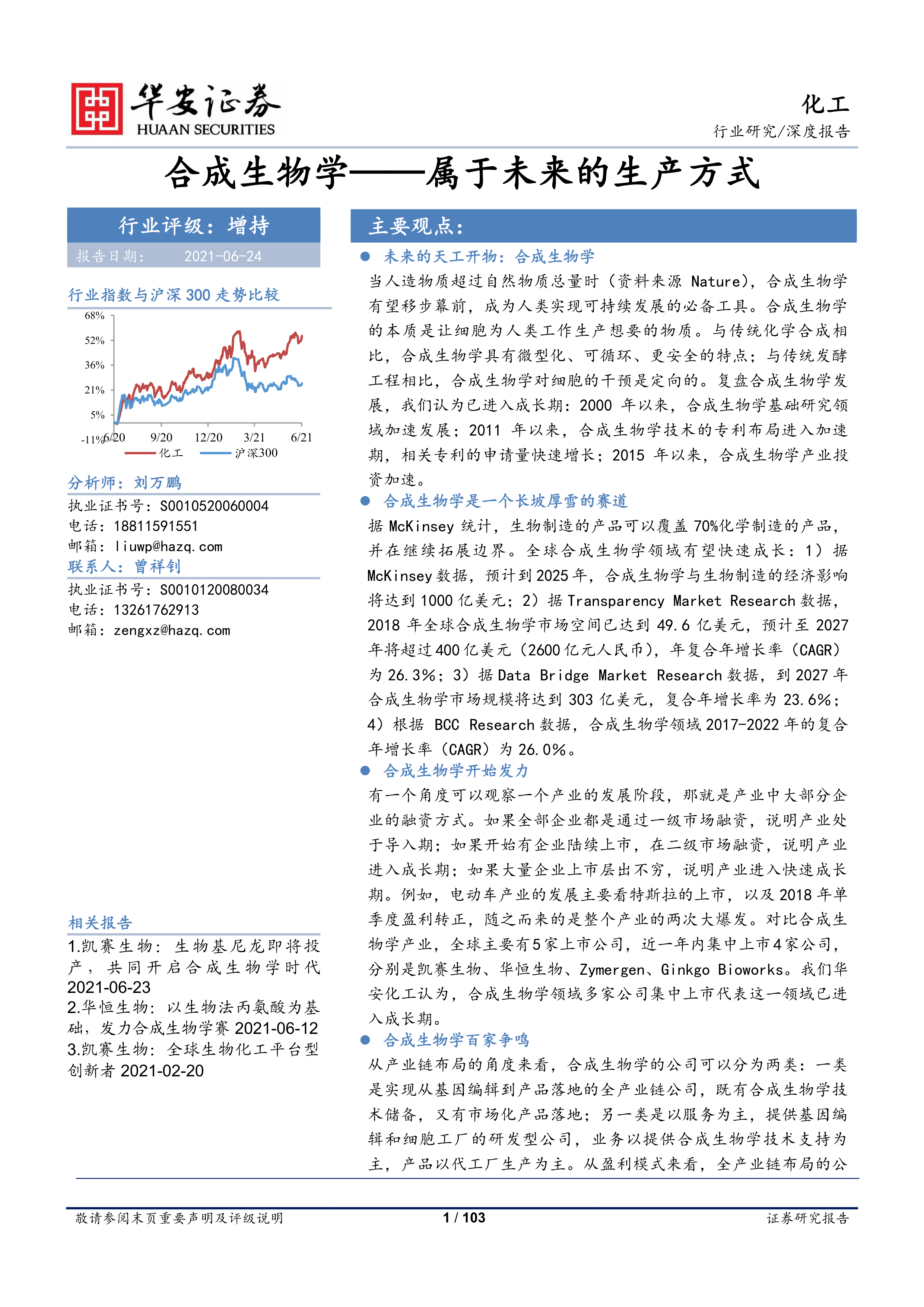 化工行业深度报告:合成生物学——属于未来的生产方式