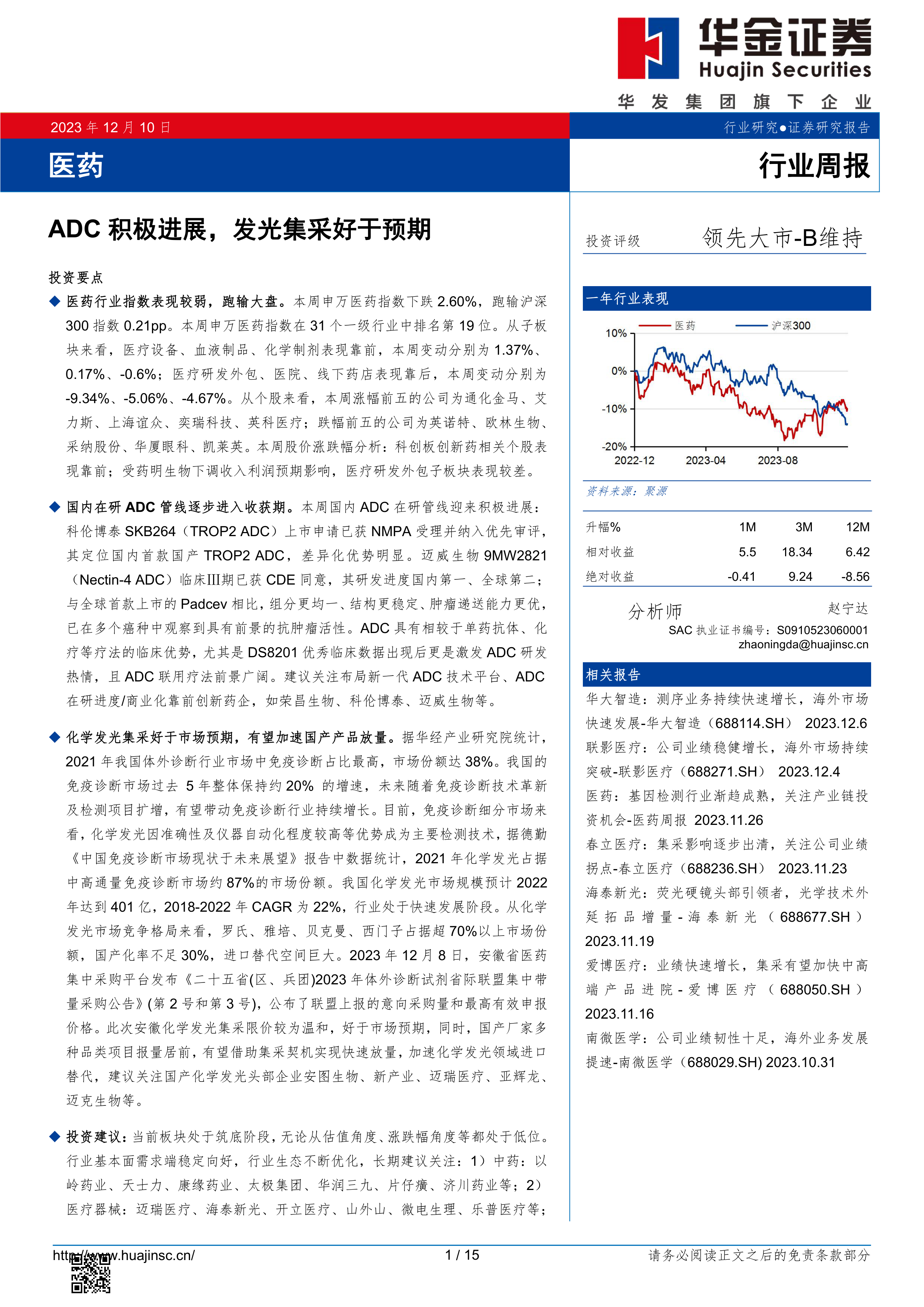 医药行业周报:ADC积极进展,发光集采好于预期
