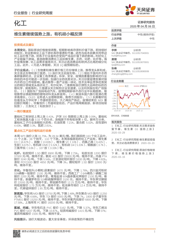 化工行业研究周报:维生素继续强势上涨,有机硅小幅反弹