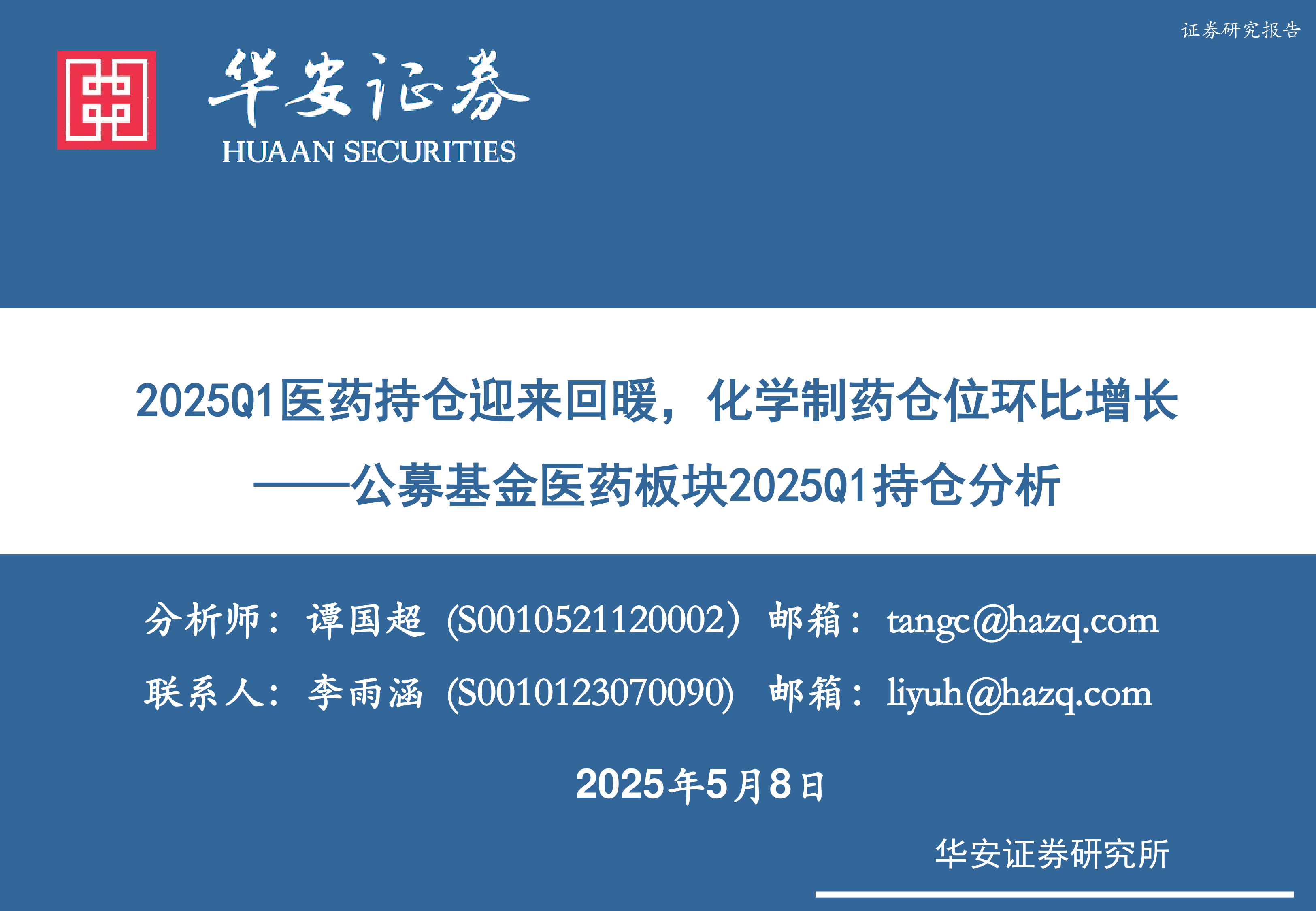 公募基金医药板块2025Q1持仓分析:2025Q1医药持仓迎来回暖,化学制药仓位环比增长