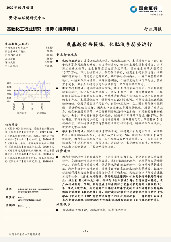 基础化工行业研究:氨基酸价格提振,化肥淡季弱势运行