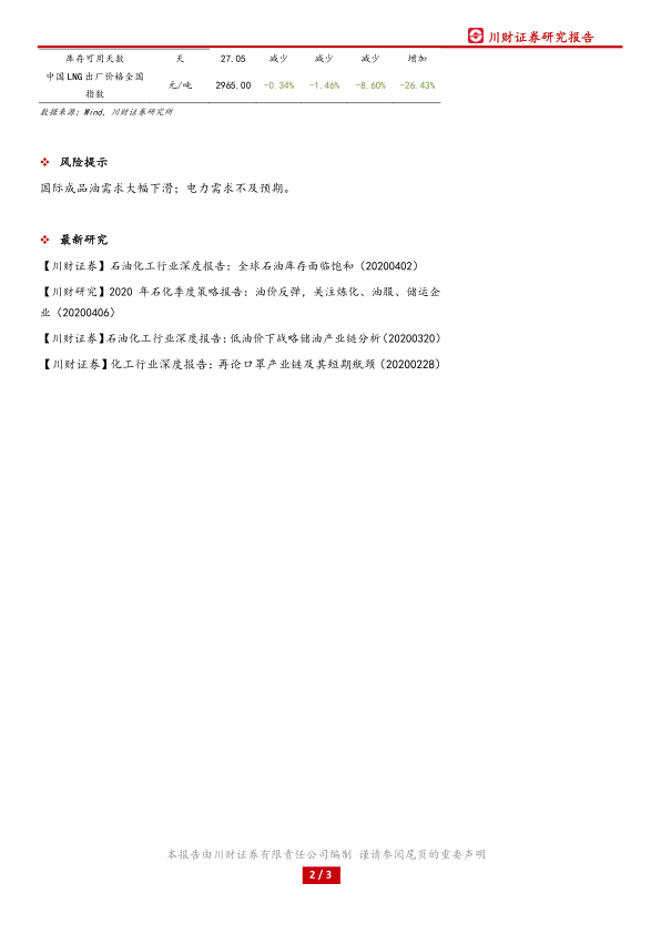 报告指出了两个主要的风险因素:国际成品油需求大幅下滑和电力需求不及预期。