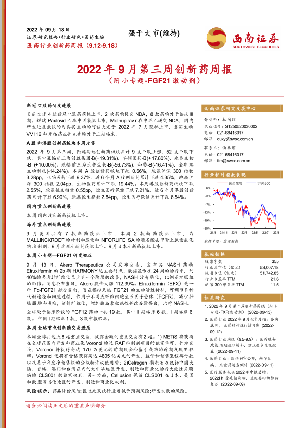 2022年9月第三周创新药周报(附小专题-FGF21激动剂)