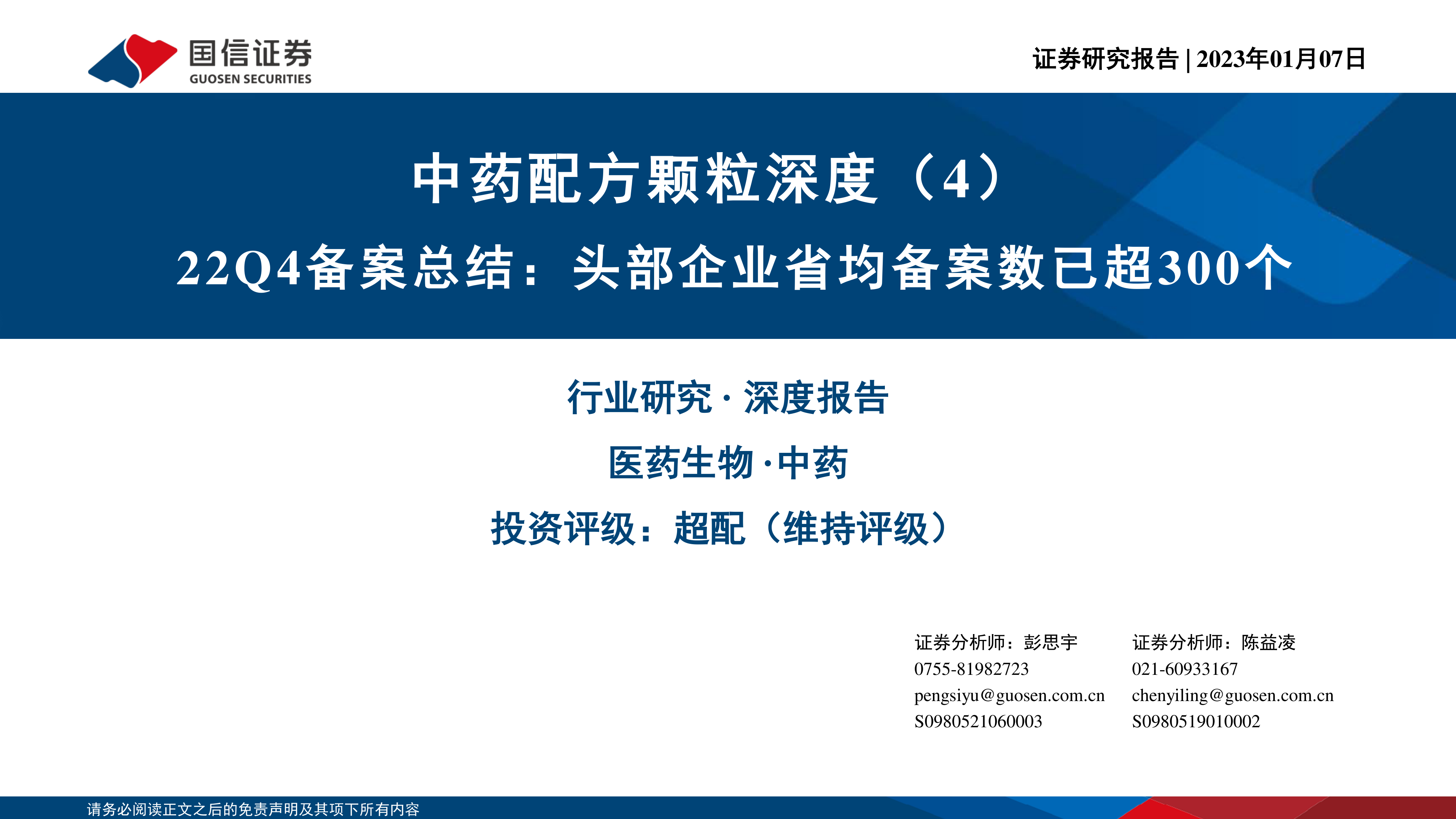风险提示:中药配方颗粒标准颁布实施不及预期,中药配方颗粒备案不及预期,行业竞争加剧风险,集采风险,疫情反复风险