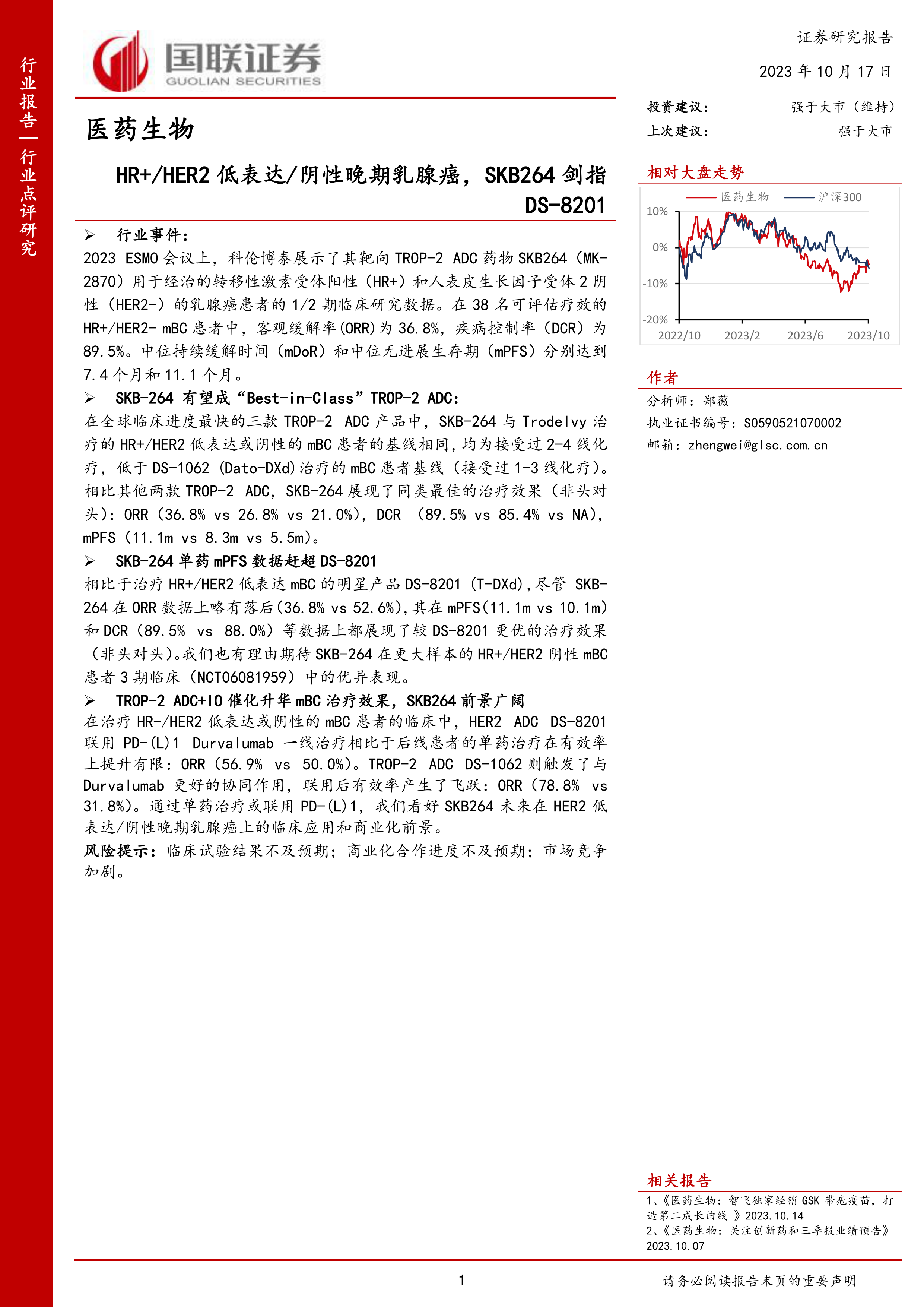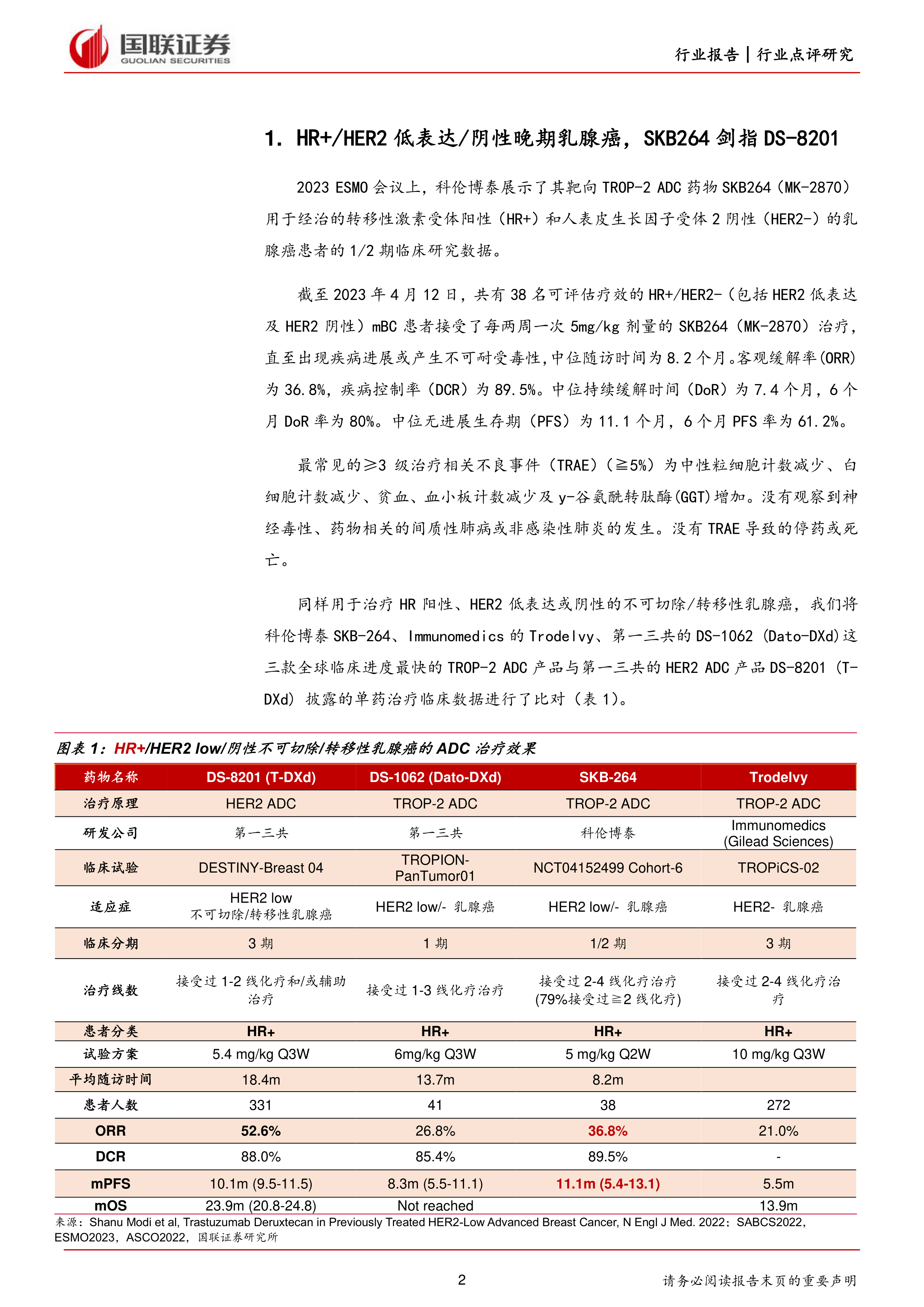 医药生物行业:/HER2低表达/阴性晚期乳腺癌,SKB264剑指DS-8201