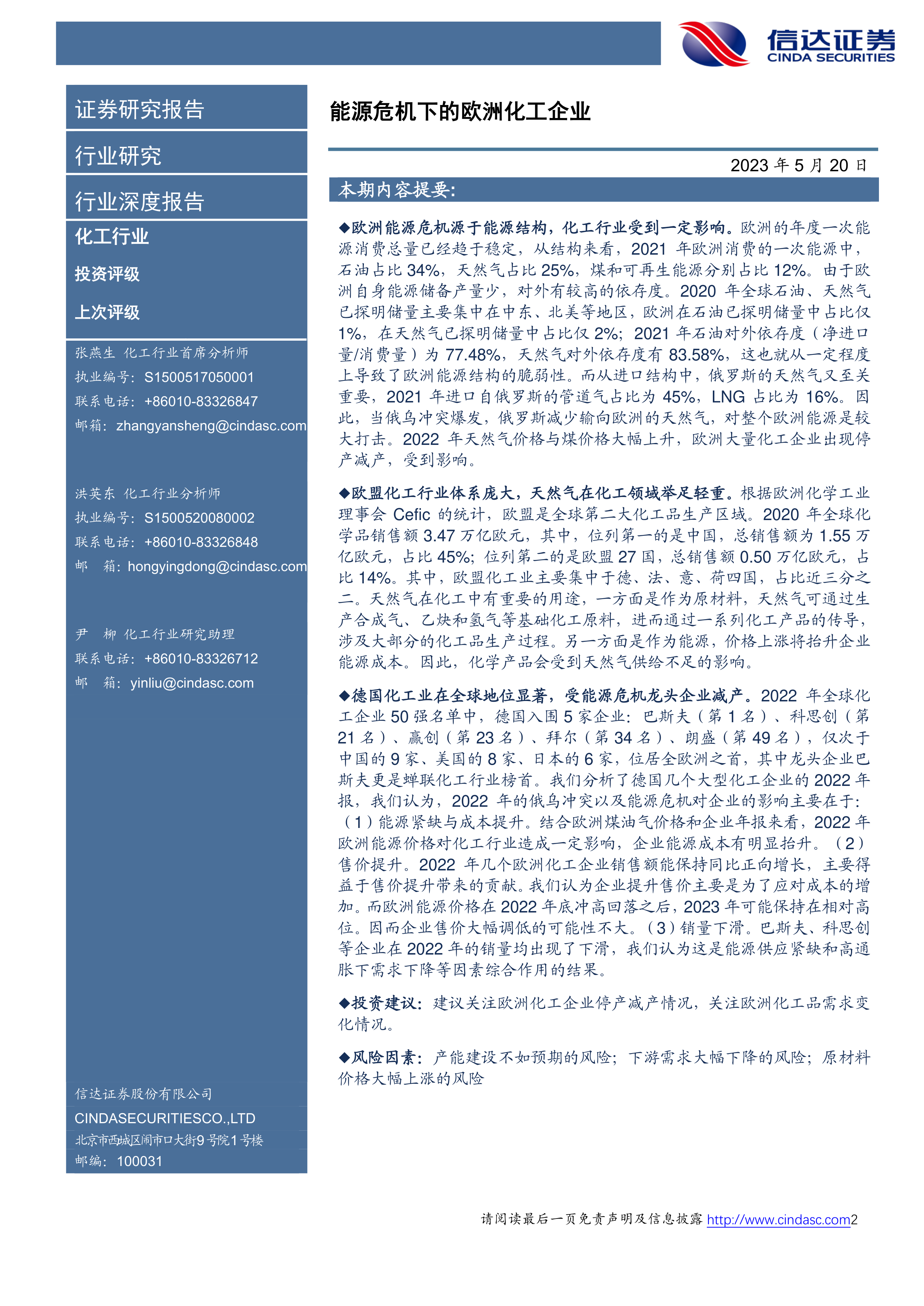 化工行业行业深度报告:能源危机下的欧洲化工企业