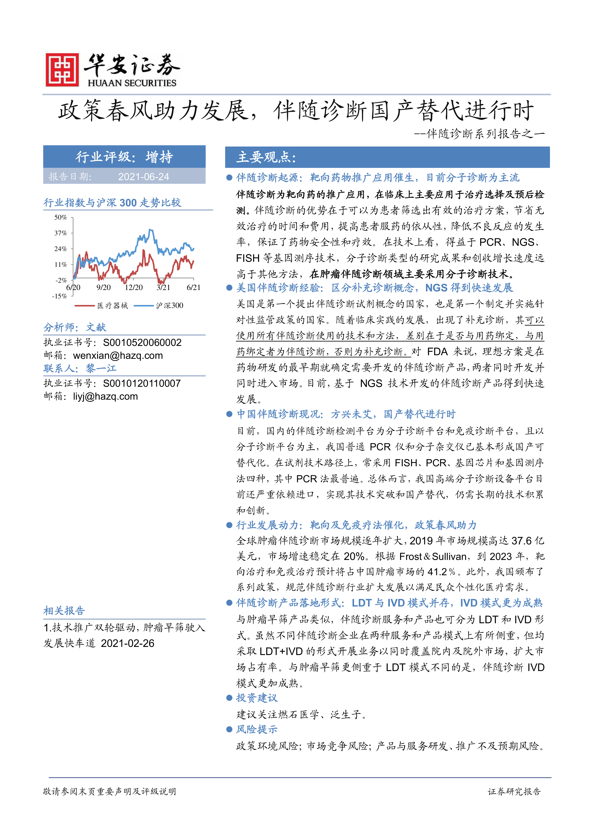 医疗服务:伴随诊断系列报告之一-政策春风助力发展,伴随诊断国产替代进行时