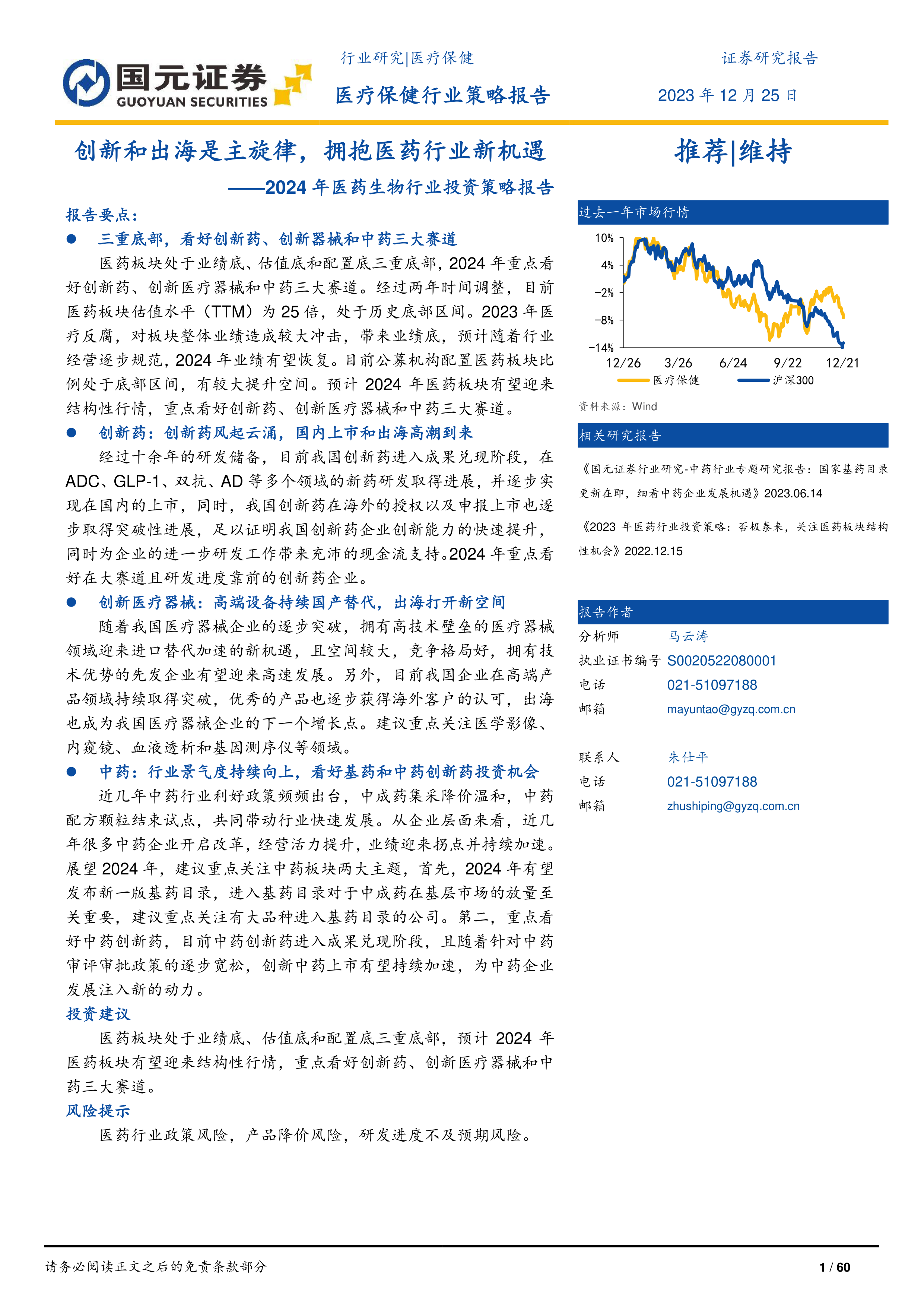 报告看好创新药、创新医疗器械和中药三大赛道。创新药进入成果兑现阶段,国内上市和出海加速;创新医疗器械领域进口替代加速,出海打开新空间;中药行业政策利好频出,基药和创新中药投资机会突出。