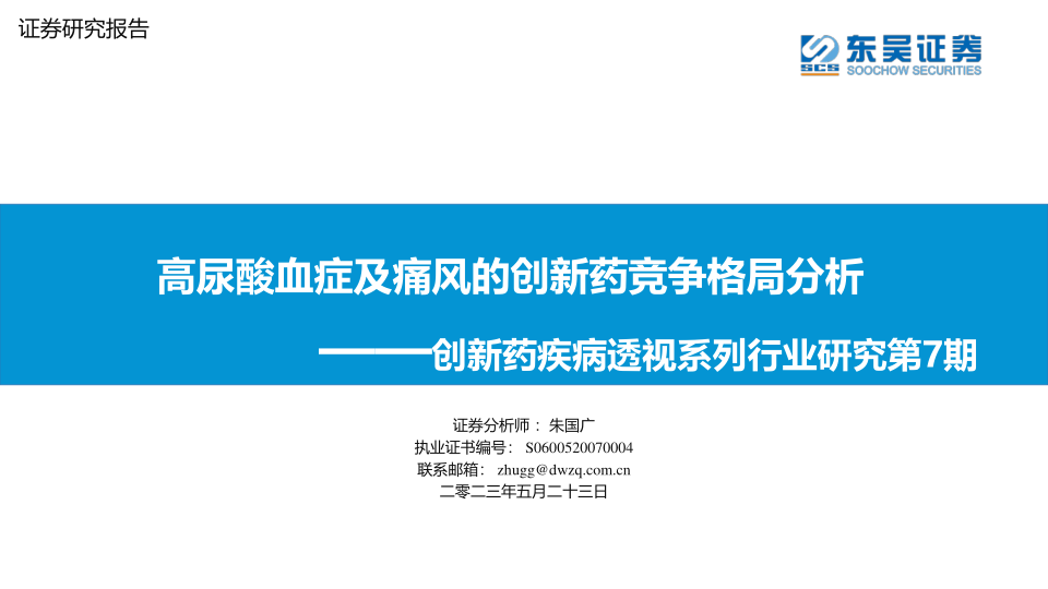 创新药疾病透视系列行业研究第7期:高尿酸血症及痛风的创新药竞争格局分析