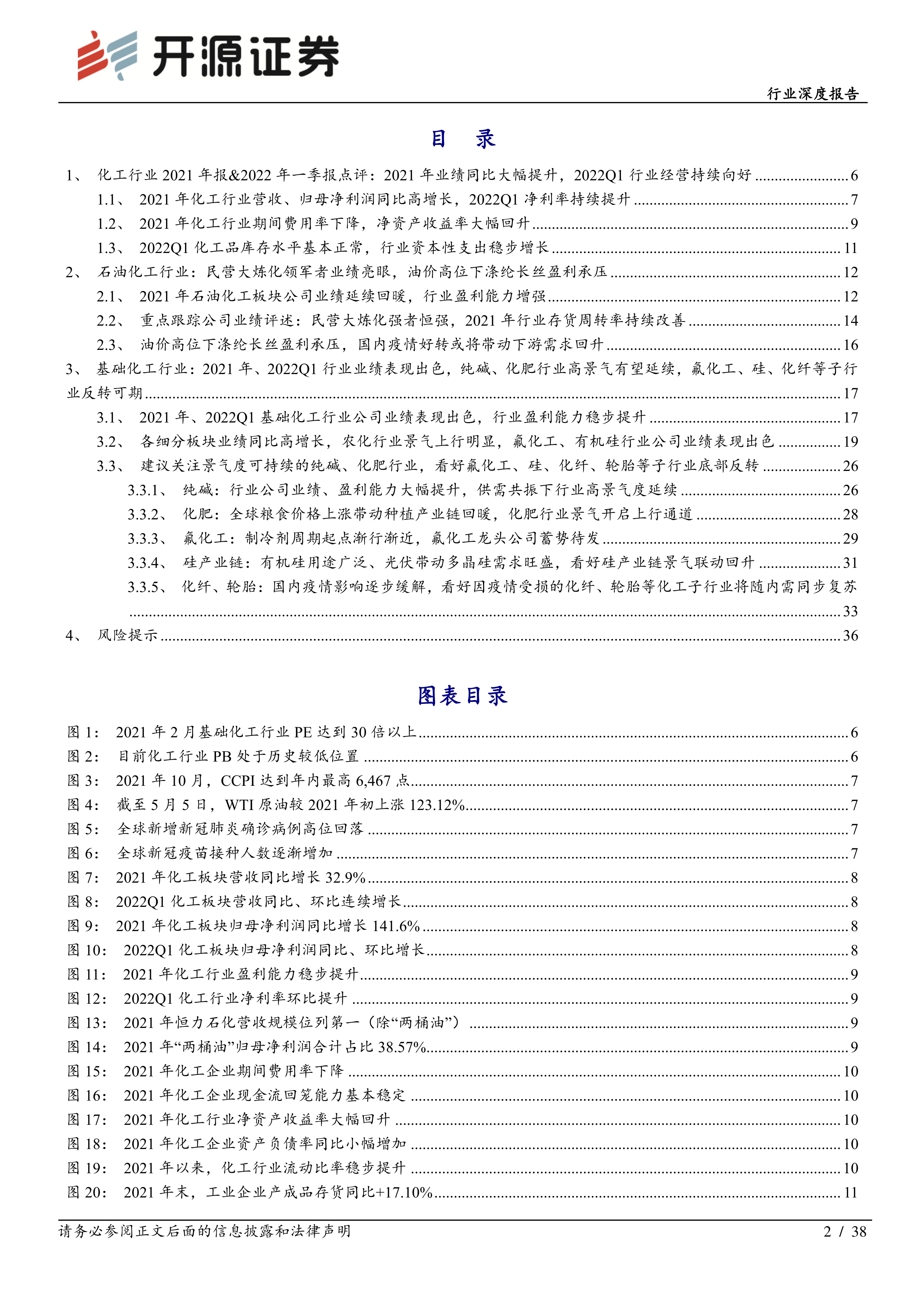 本报告的核心观点是:2021年中国化工行业整体业绩大幅提升,2022年一季度行业经营持续向好,但面临宏观经济下行、油价波动以及下游需求不确定性等风险。具体而言: