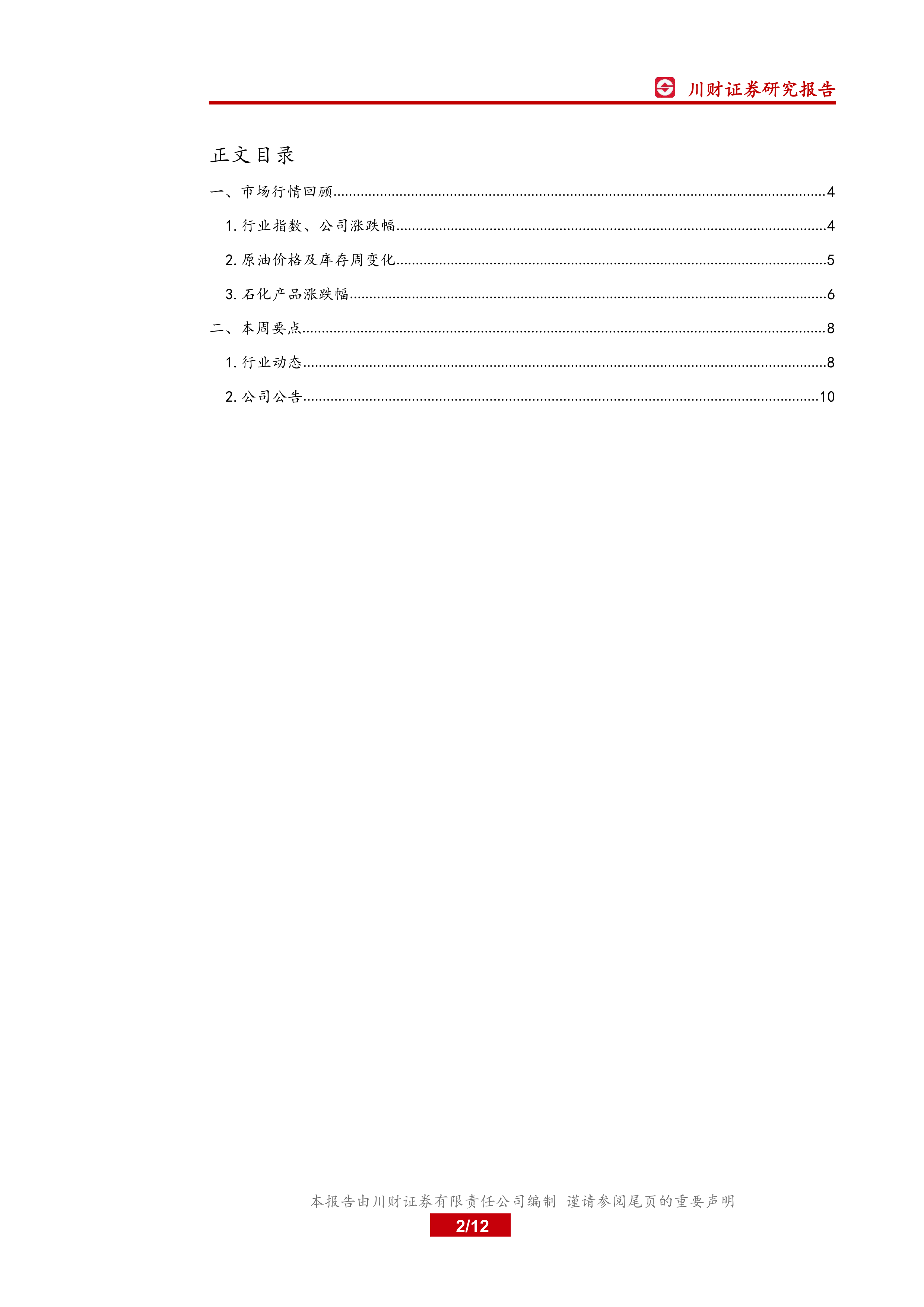 本报告分析了本周石油化工行业市场行情,重点关注了全球“减碳”政策对油价的影响以及高油价对石化行业的影响。报告指出,全球减碳措施导致石油供给下降,支撑油价维持高位,利好“三桶油”及部分下游石化企业和煤化工企业。报告还对本周行业动态和部分上市公司的业绩进行了解读,并提示了OPEC大幅提高原油产量、国际成品油需求长期下滑等风险因素。 投资者需结合自身情况,谨慎决策。