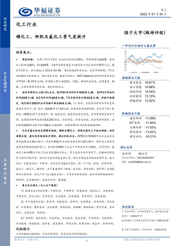 化工行业:磷化工、钾肥及氟化工景气度提升