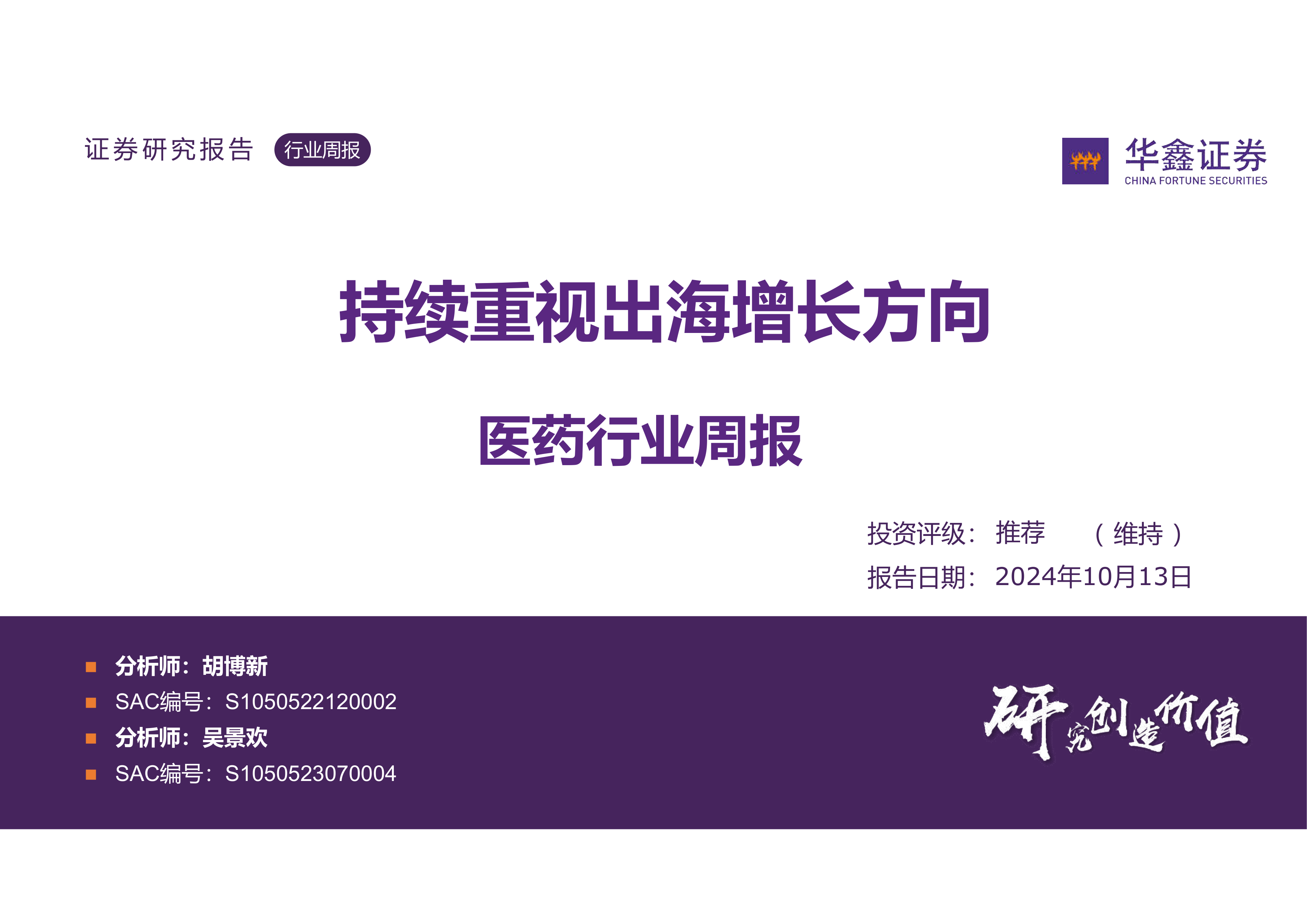 医药行业周报:持续重视出海增长方向