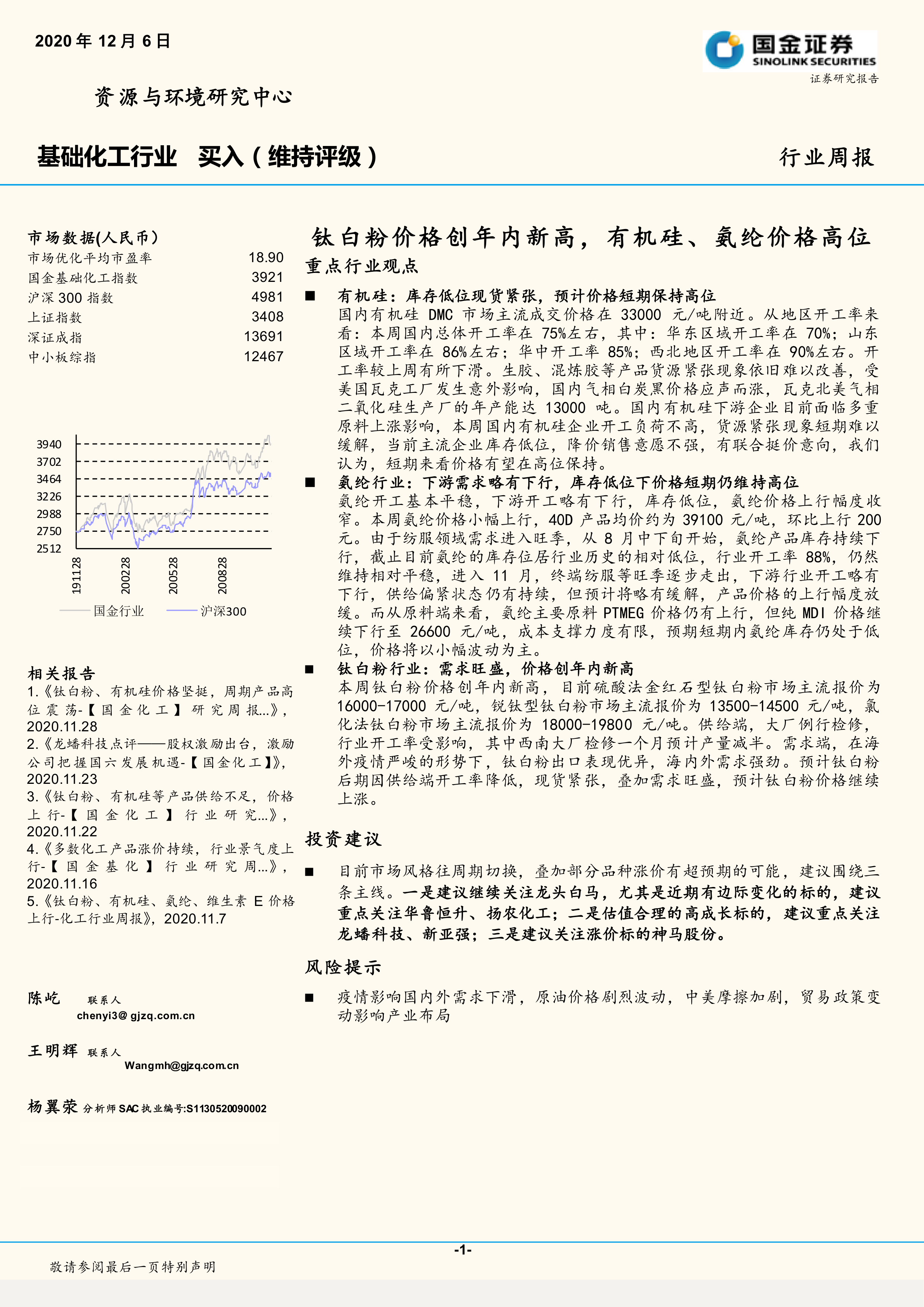 本报告以基础化工行业周报的形式,对市场进行了回顾和分析。