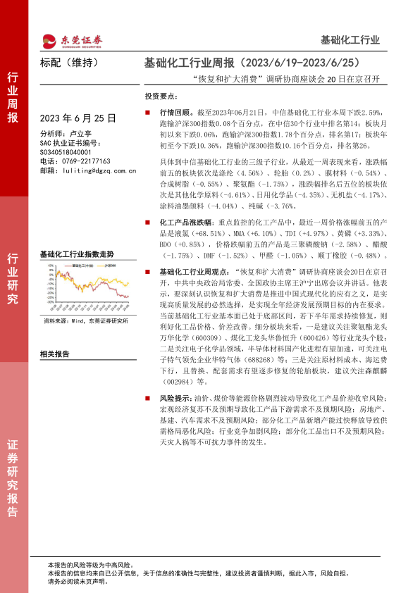 基础化工行业周报:“恢复和扩大消费”调研协商座谈会20日在京召开