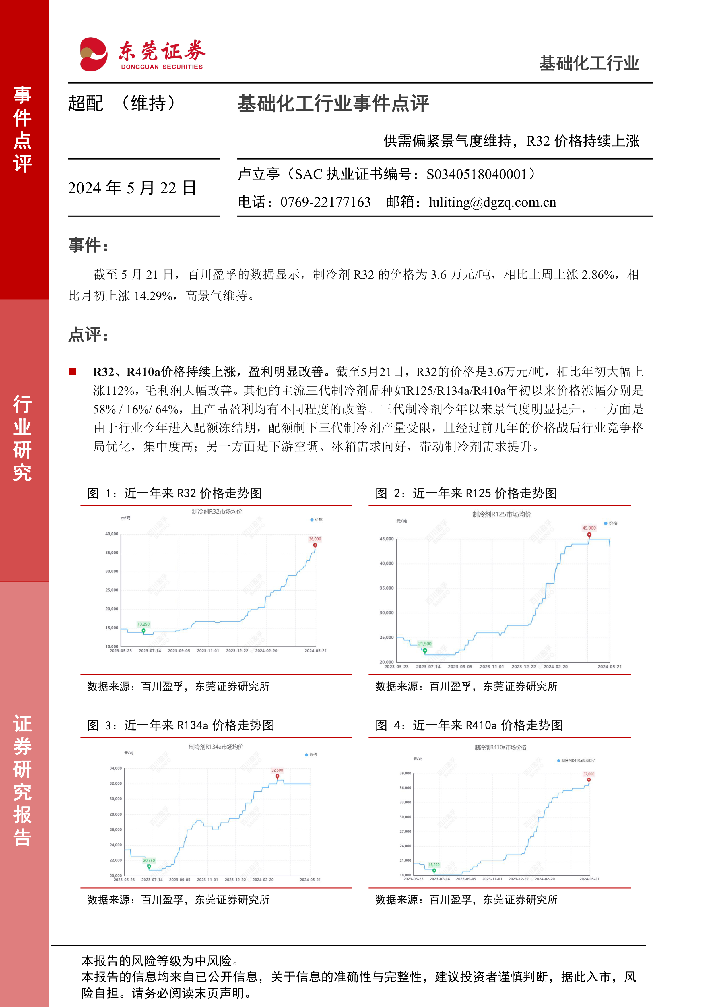 基础化工行业事件点评:供需偏紧景气度维持,R32价格持续上涨