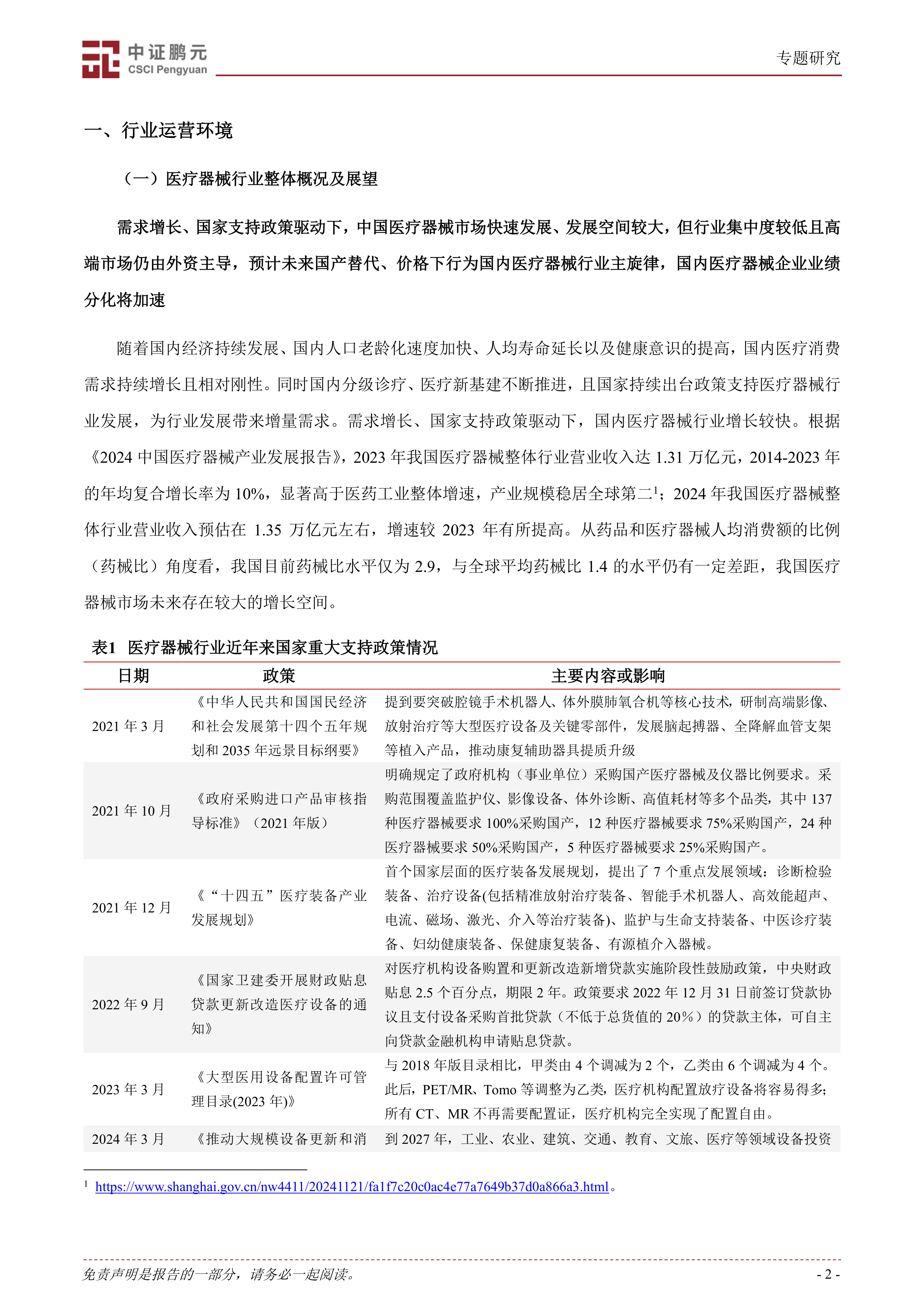 2025 年国产替代、价格下行为国内医疗器械行业主旋律。受益于创新支持、国产招投标采购、集采等政策推进,我国医疗器械行业技术水平与国际龙头企业快速缩小、国产渗透率不断提高,医用医疗设备、高值耗材、免疫诊断(化学发光)等细分领域,国产替代空间仍较大。随着医保控费政策以及医疗反腐的深化推进,2025 年医疗器械产品价格或继续下降。