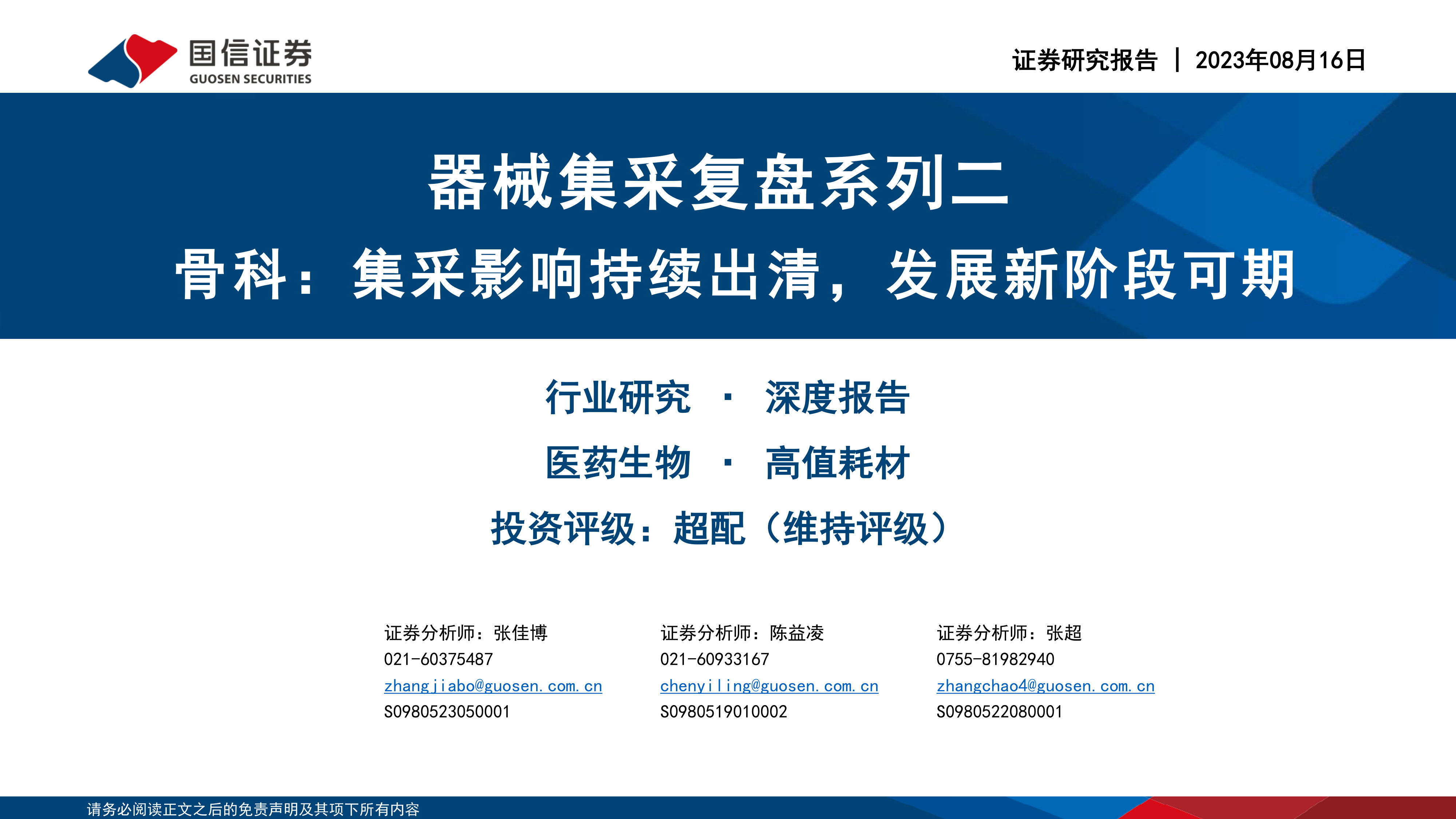 器械集采复盘系列二:骨科:集采影响持续出清,发展新阶段可期