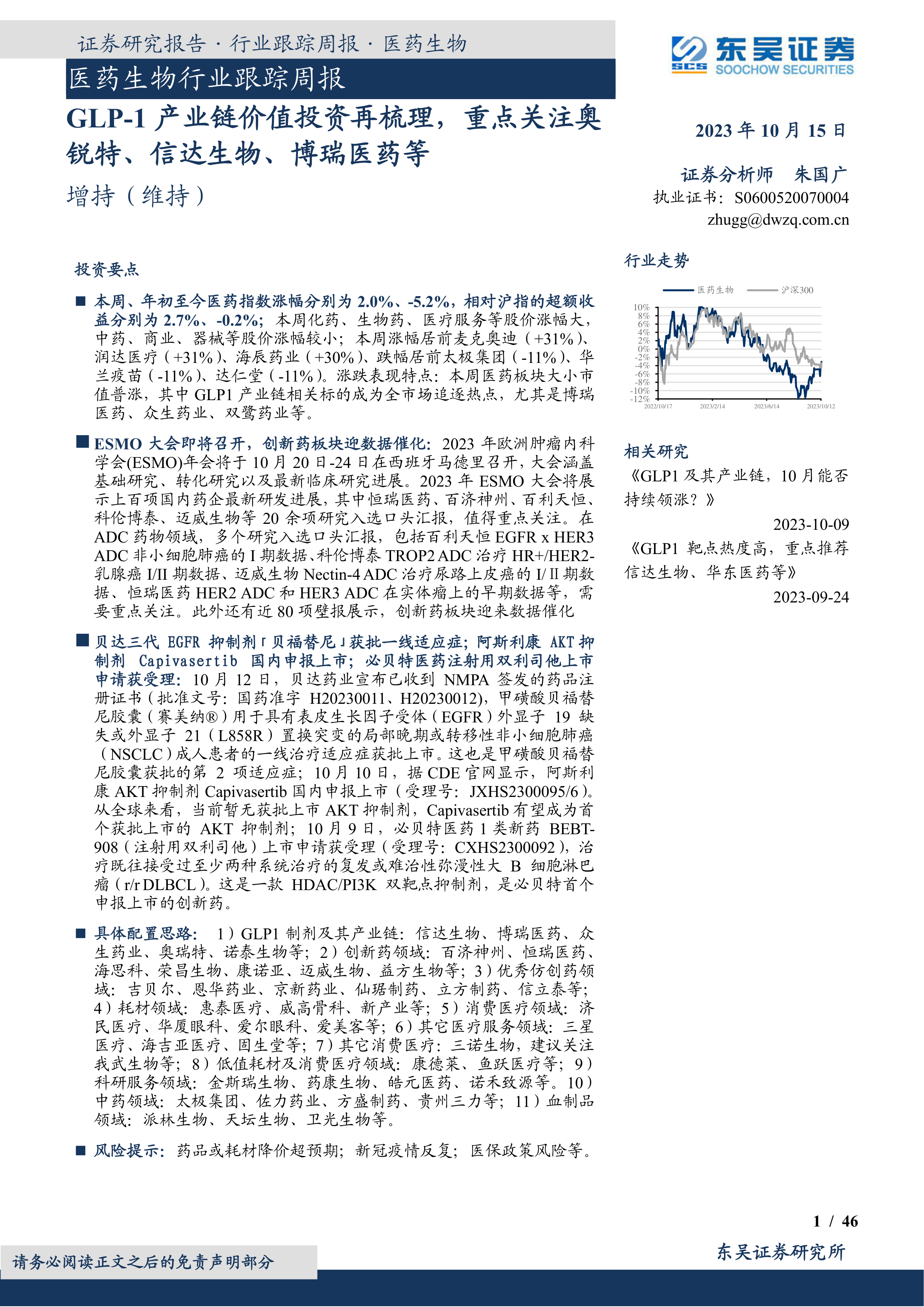医药生物行业跟踪周报:GLP-1产业链价值投资再梳理,重点关注奥锐特、信达生物、博瑞医药等