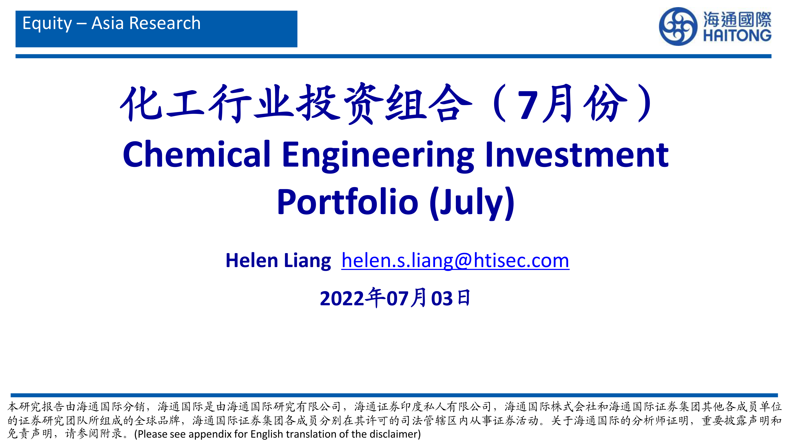 本报告的核心观点是基于海通国际7月份化工行业研究报告,对亚洲化工市场进行数据分析和专业解读。报告主要涵盖以下几个方面:
