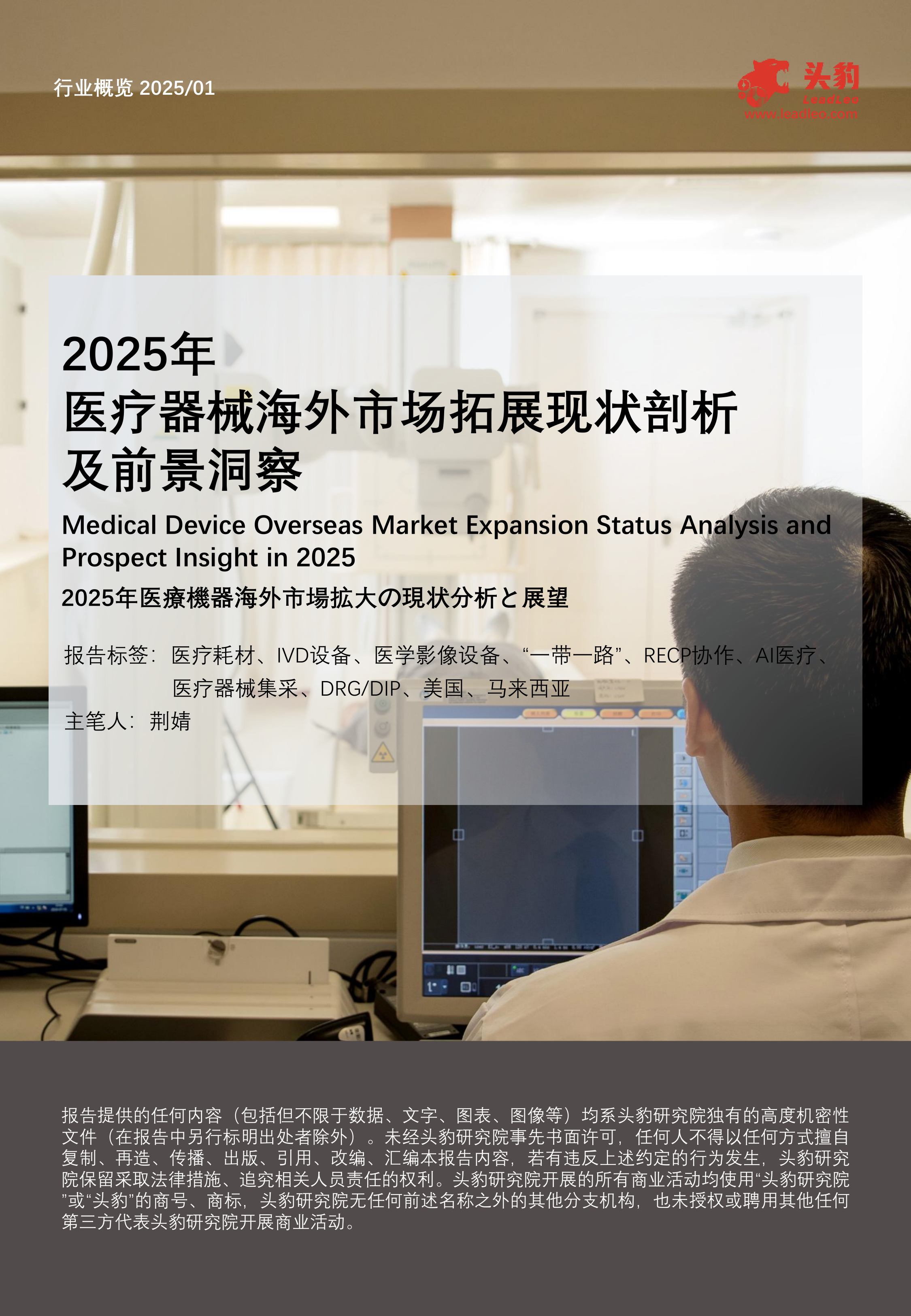 本报告基于头豹研究院的数据,对2025年中国医疗器械海外市场拓展现状及前景进行了专业分析。核心观点如下: