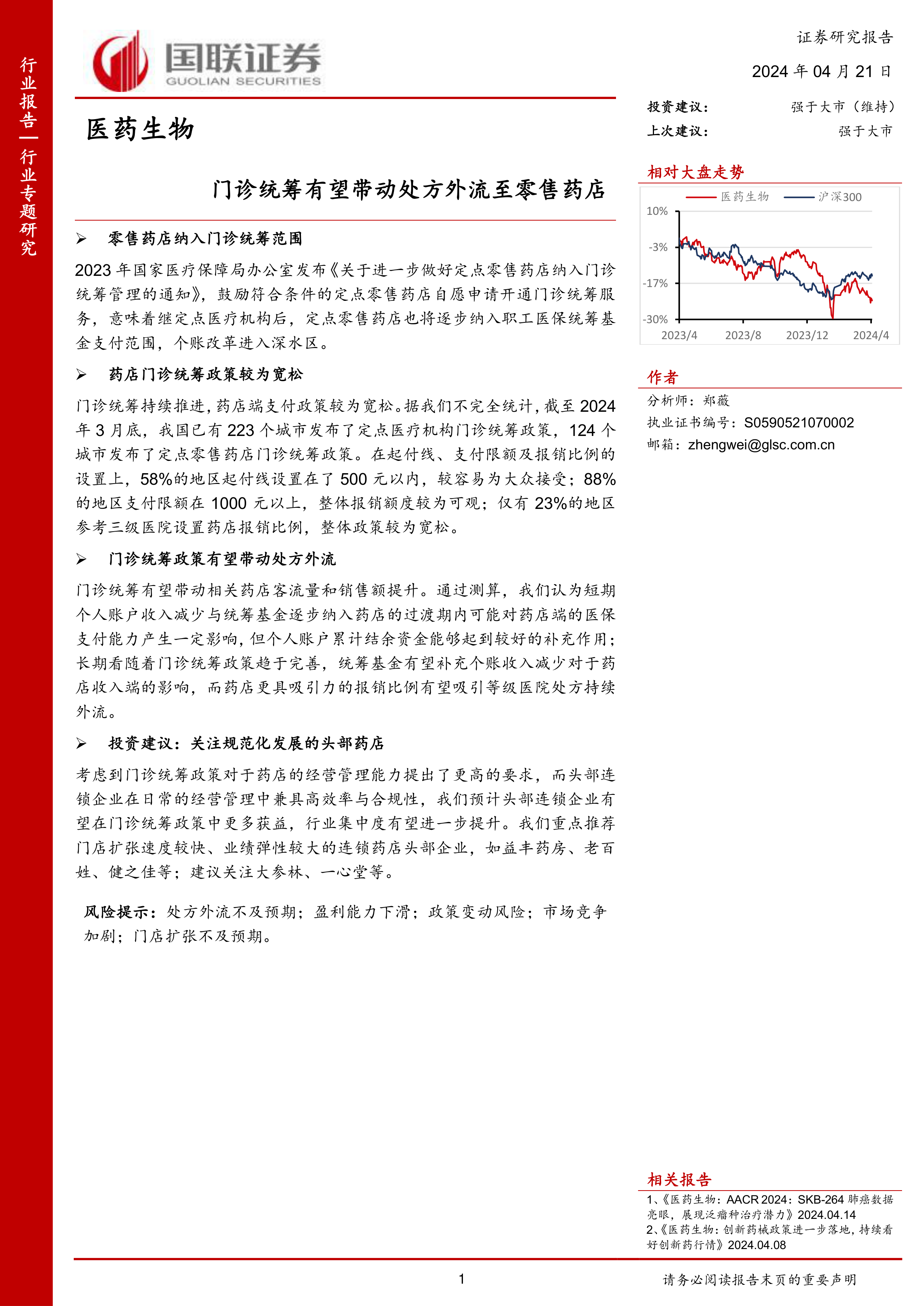 医药生物:门诊统筹有望带动处方外流至零售药店