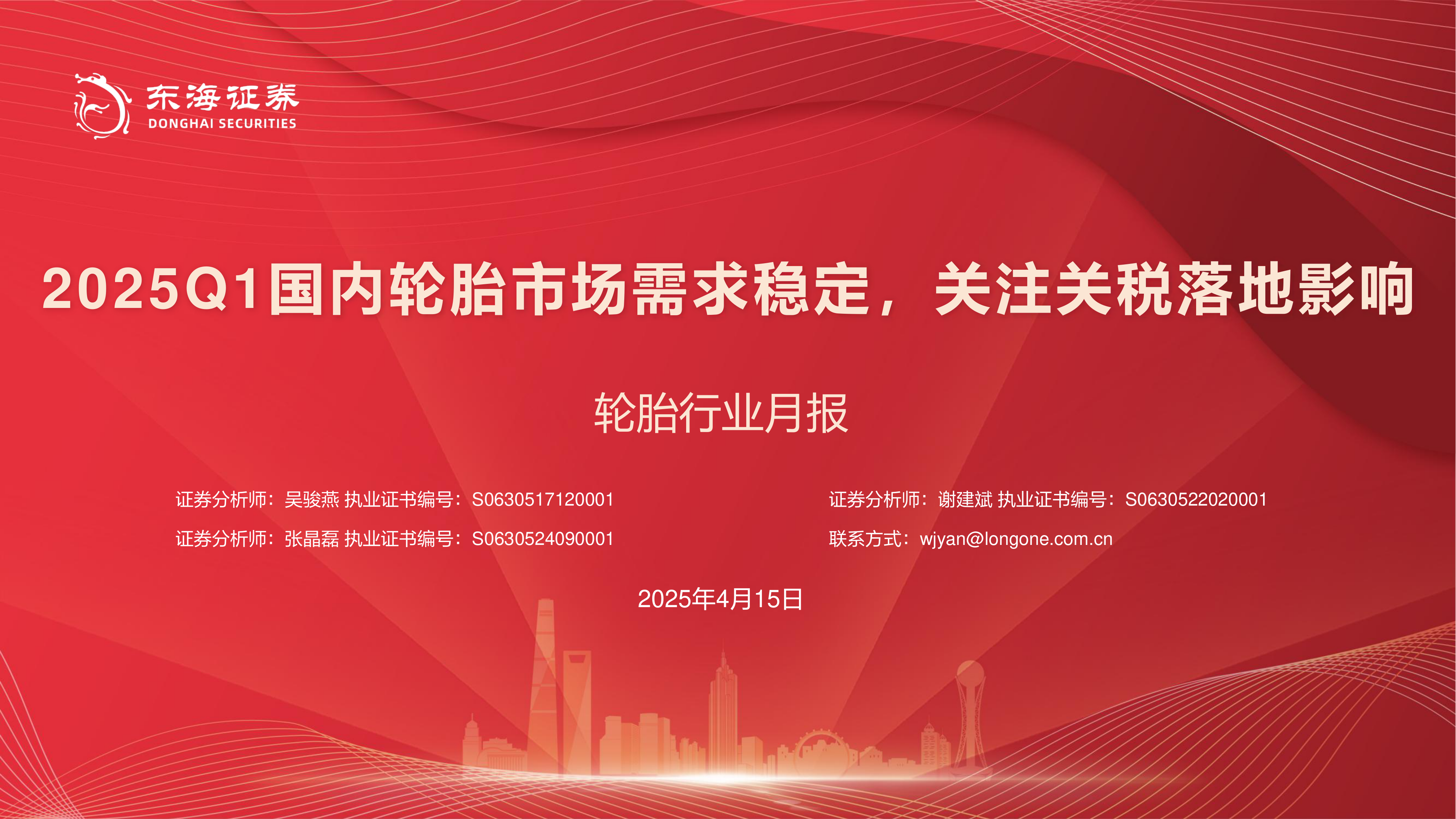 轮胎行业月报:2025Q1国内轮胎市场需求稳定,关注关税落地影响