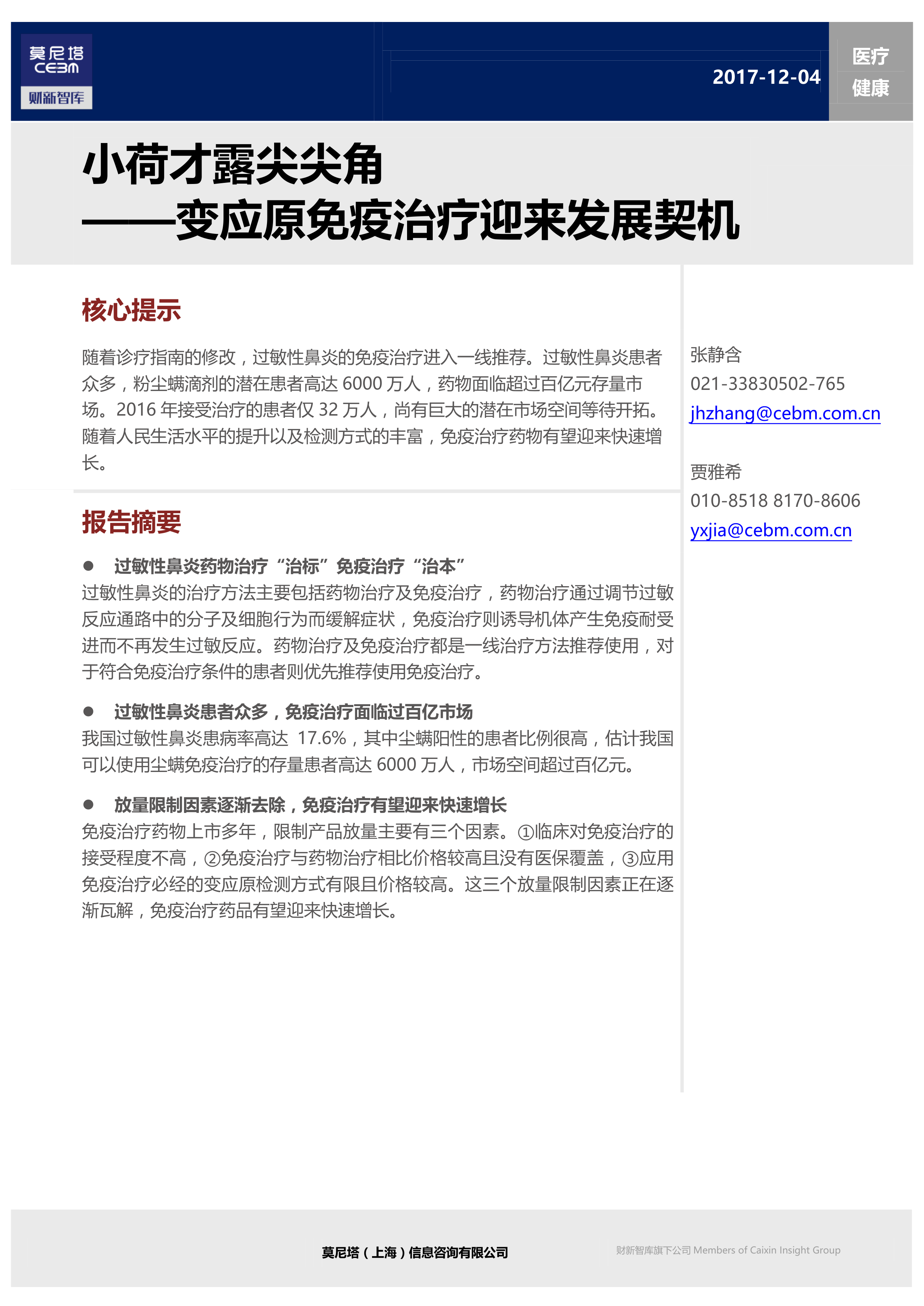 医疗健康行业:小荷才露尖尖角-变应原免疫治疗迎来发展契机