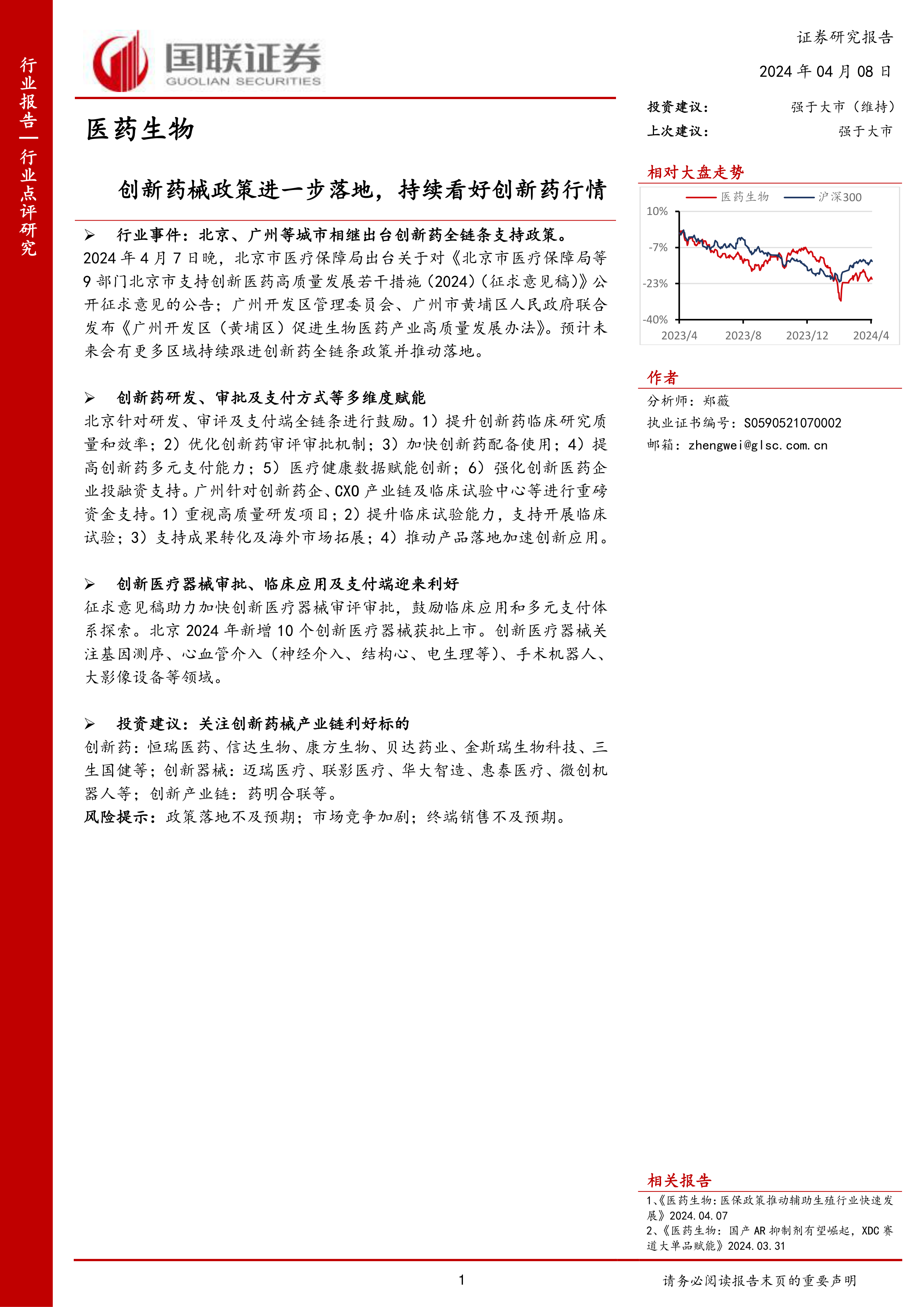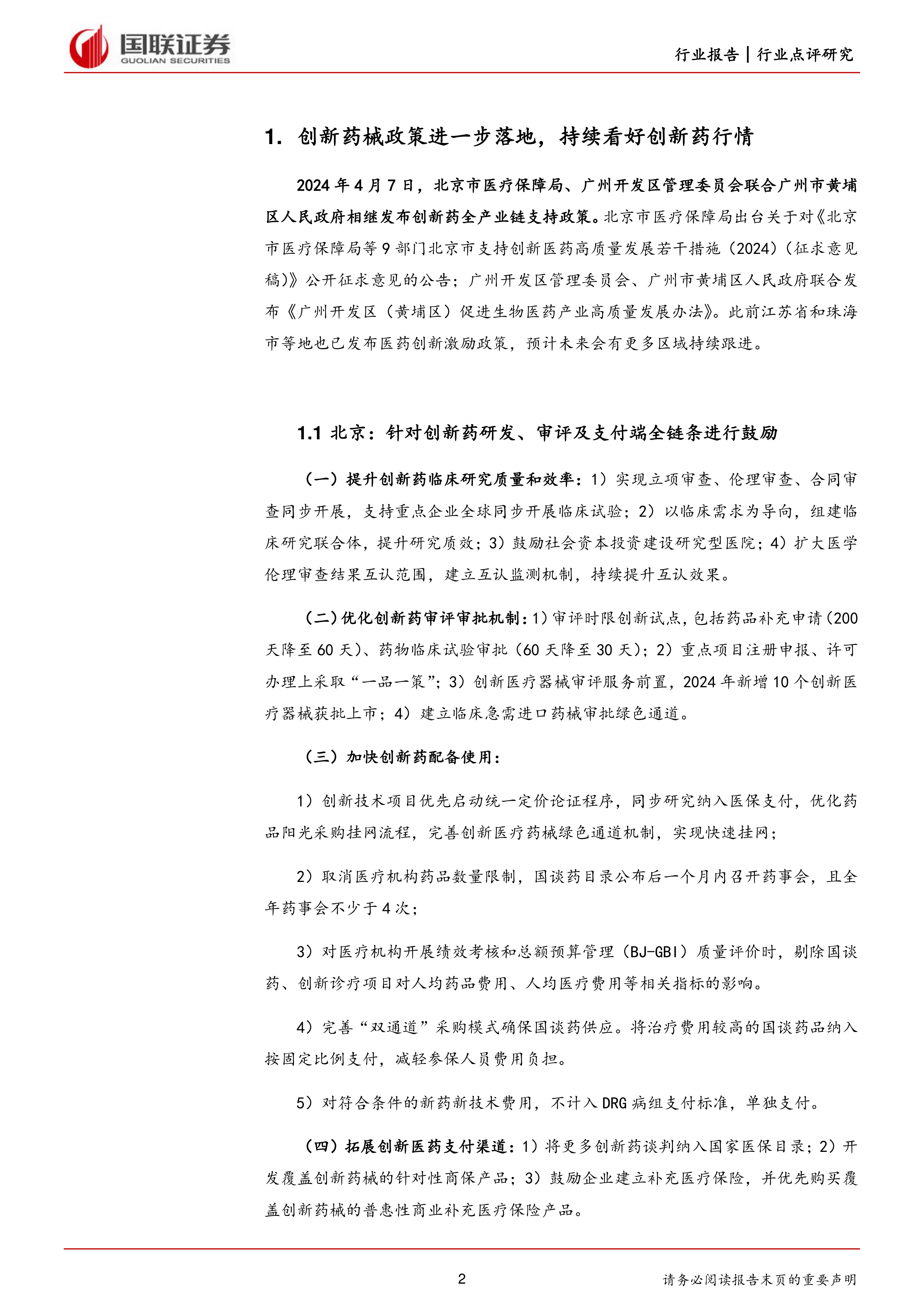 行业事件:北京、广州等城市相继出台创新药全链条支持政策。
