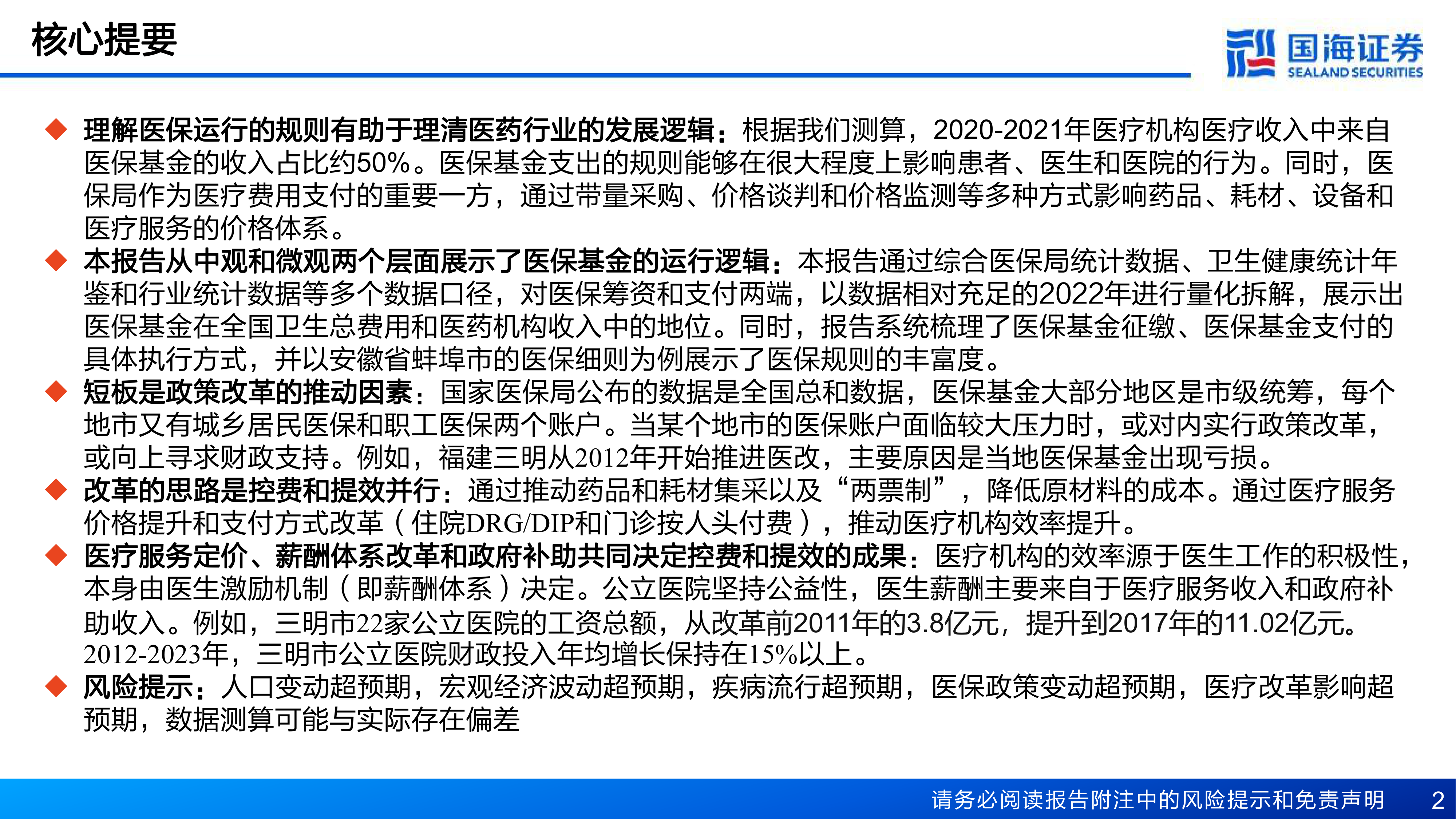 风险提示:人口变动超预期,宏观经济波动超预期,疾病流行超预期,医保政策变动超预期,医疗改革影响超预期,数据测算可能与实际存在偏差