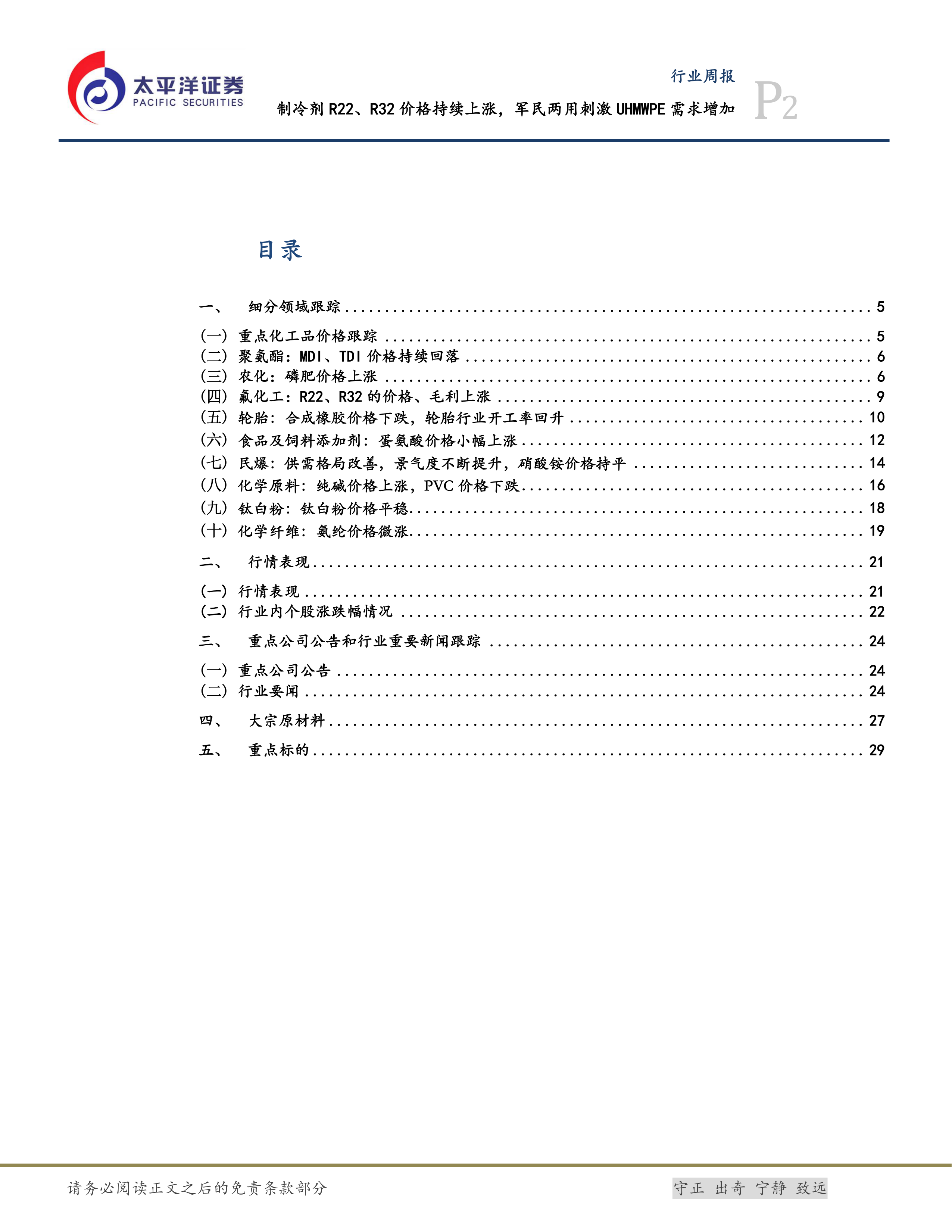 化工行业周报:制冷剂R22、R32价格持续上涨,军民两用刺激UHMWPE需求增加