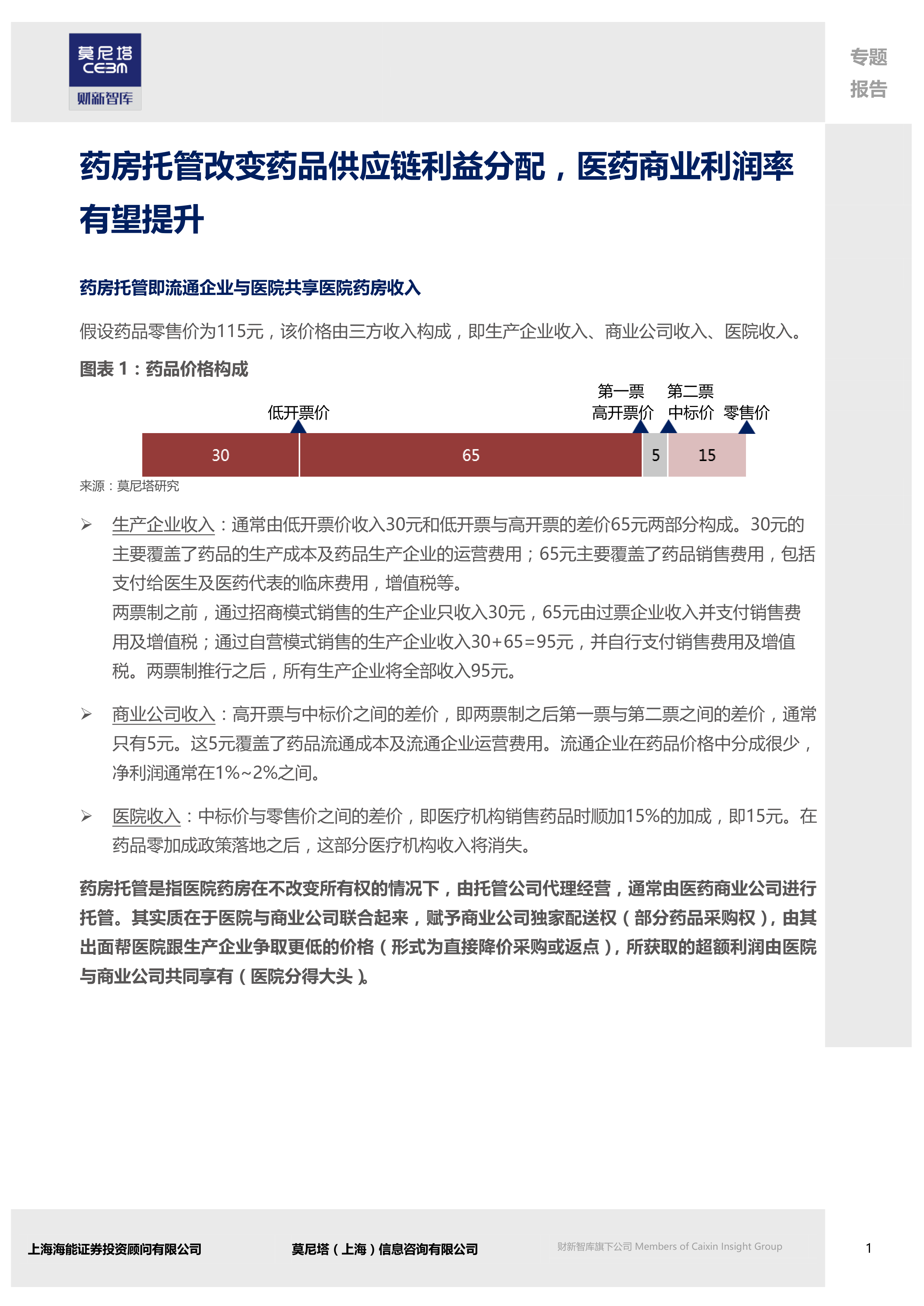 本报告分析了药品零加成政策对医药行业的影响,特别是对医院药房运营模式的冲击。药房托管模式作为应对零加成政策的重要策略,将改变药品供应链的利润分配,为医药商业公司带来新的发展机遇。二级医院由于其特殊的收入结构,将成为药房托管的重点目标。报告建议投资者关注已布局或正在布局医院药房托管业务的医药商业公司,并密切关注药品零加成政策的落地情况及其对医药行业的影响。 报告数据主要来源于莫尼塔研究,并结合了公开的政策文件和新闻报道。 需要注意的是,本报告仅供参考,不构成投资建议。