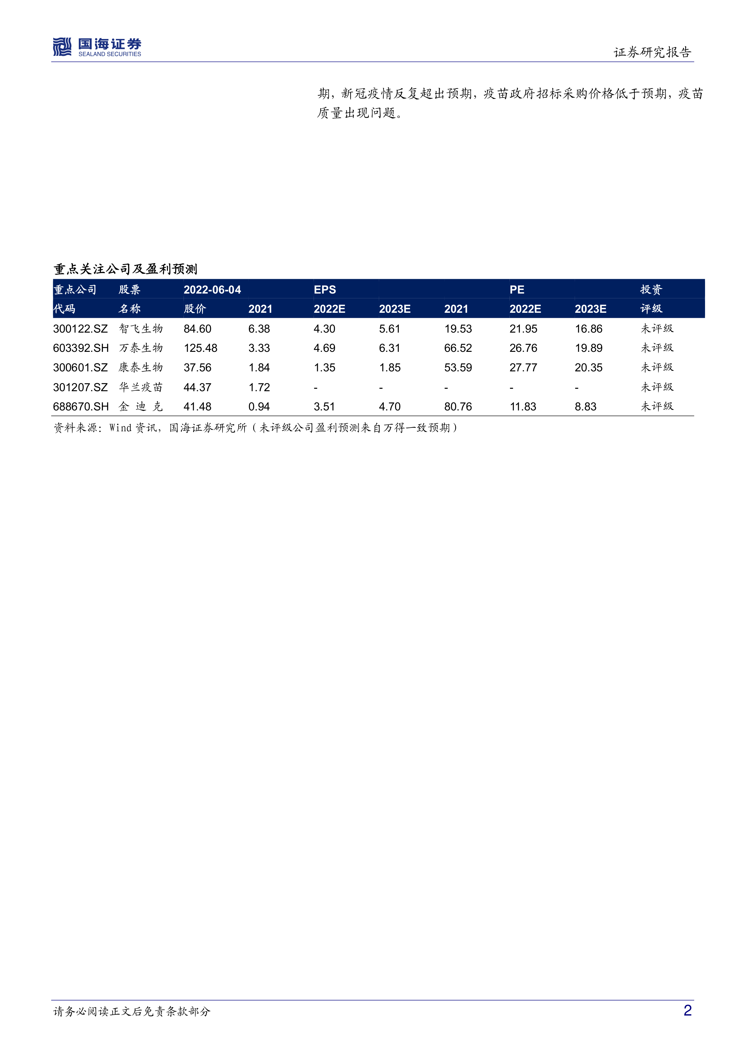 风险提示疫苗研发和获批进展不及预期,疫苗销售放量不及预期,新冠疫情反复超出预期,疫苗政府招标采购价格低于预期,疫苗质量出现问题。