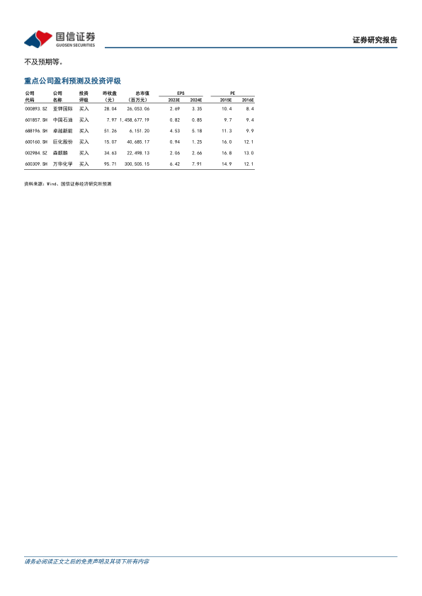 风险提示:原材料价格波动;产品价格波动;项目进度不及预期;下游需求不及预期等。
