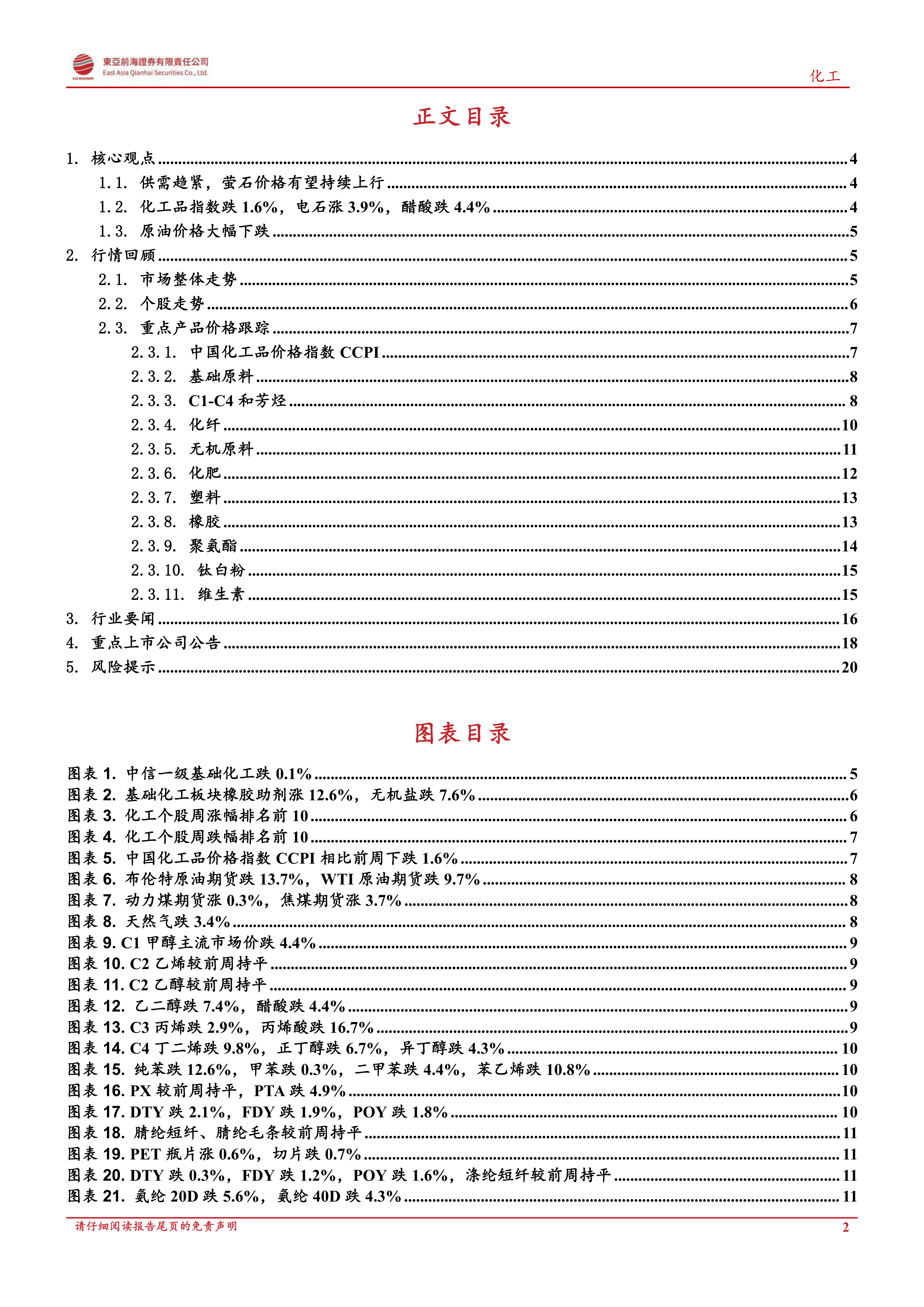 本报告涵盖了萤石市场分析、化工产品价格走势、市场整体情况以及个股走势等方面的内容。